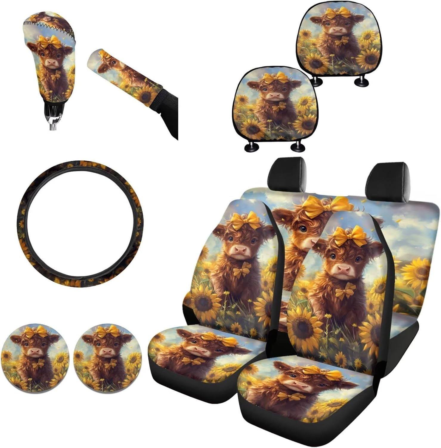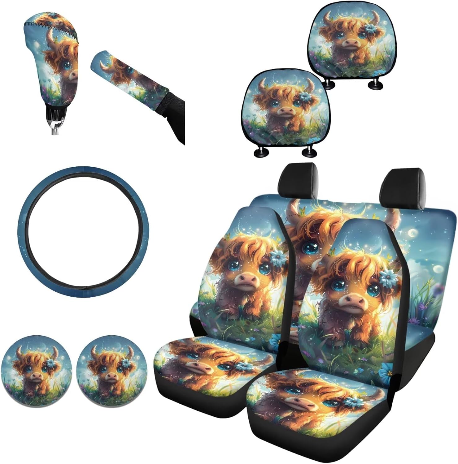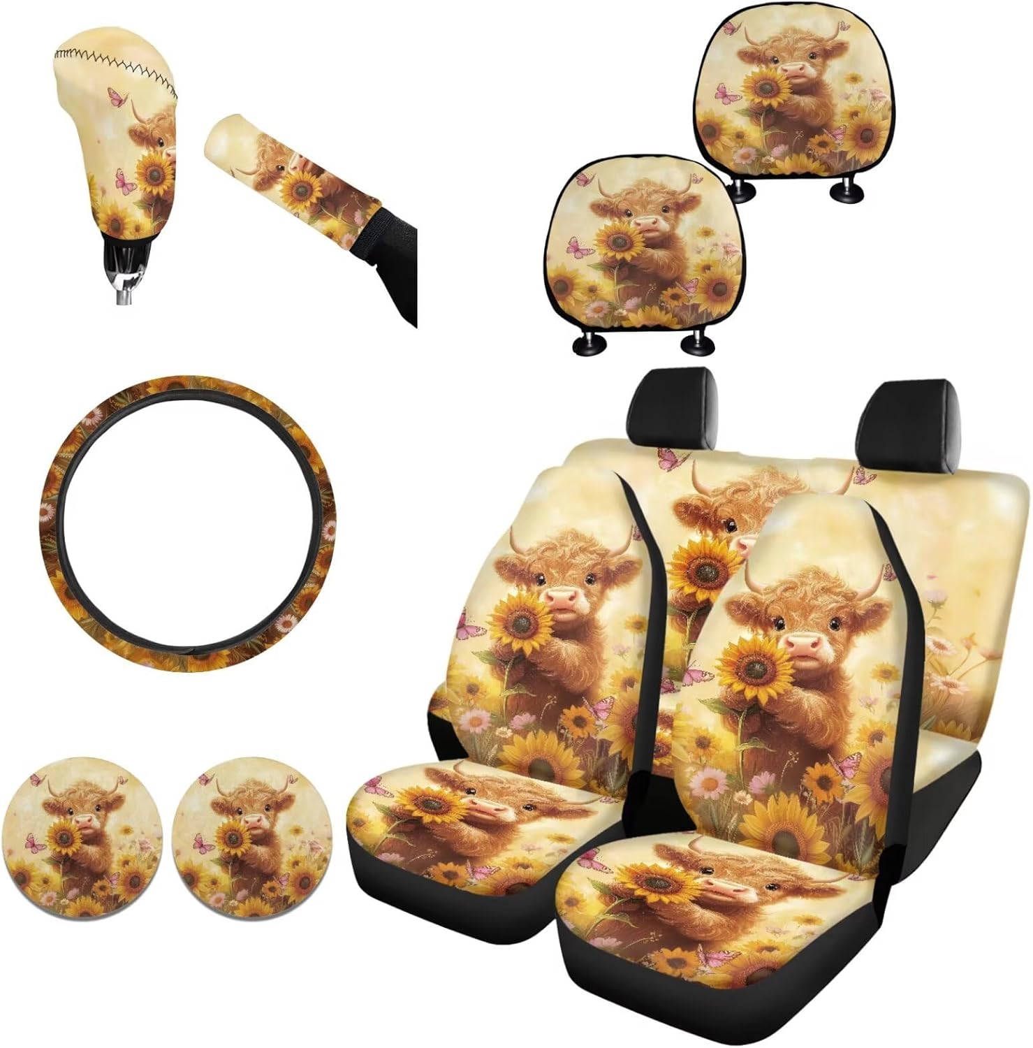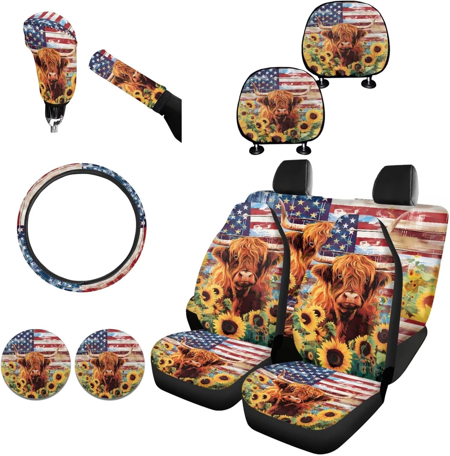 Package:All 10PCS,Includes 2Pcs Front Bucket Seat Covers+Rear Bench Cover+2Pieces Cup Coaster+Steering Wheel Cover+Gear Shift Cover+Handbrake Cover;These car seat covers is design to protect our car seat, bring more comfortable to our drivers. Suitable for almost universal automobile cars. Quick and easy installation,no ools required for installation. Pay attention to the Warining that these car seat covers should NOT be used on a seat with side airbags. Back Polyester fabric material, easy to clean and dry. washable ,no fading. Soft material keep hip and back comfortable in long time use. Keep your car seats from wear and stains. Elastic strap with hooks on the bottom of the seat covers, easy to install and remove. Universal-fit car seat covers will stretch to fit most car and SUV bucket style seats. Before buying please check whether your car seat is compatible.