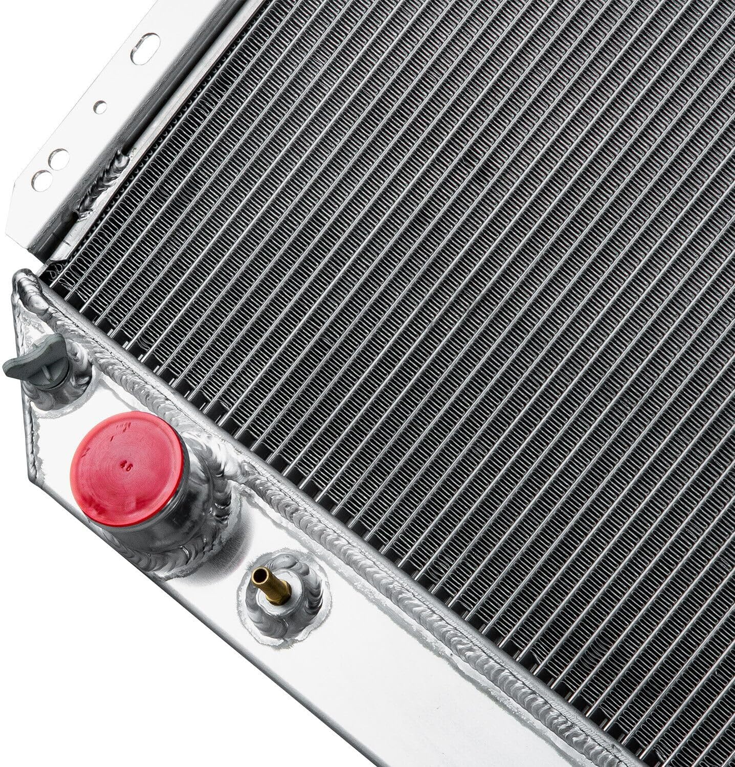This AA5052 Aluminum Radiator is designed to provide maximum cooling efficiency to prevent premature engine failure. Its light-weight, and high-heat transferring aluminum features a tube and fin design that, dramatically increases surface area that enables the heat to dissipate more efficiently. This AA5052 Aluminum Radiator is at least 30%-45% more efficient than stock ones. Most importantly, it has a much higher capacity for coolant than stock ones, which means that your cooling system will be more efficient and will be more resistant to temperature surges in racing applications. Radiator: High Performance Racing Spec. 3-Row of tubes Core Racing Design Core Size: 25.9"x 18.9" Overall Size: 29.52" x 26.18" Inlet Diameter: 1.75" Outlet Diameter: 2" Upper Hose Fitting: PASS Lower Hose Fitting: DRIVER Trans Cooler Details: 1/8-27NPT Mounting Type: BRACKET Mounting Specs: Ver - 16 1/2 Horizontal - 27 3/8 Petock Drain:OEM style brass petcock drain Radiator Cap:CNC machined filler neck and cap Vehicle Fitment: For 1966-1979 FORD F-Series/Bronco TRUCK V8 For Ford Bronco 1978-1979 (351ci V8, 400ci V8) For Ford F-Series Truck 1968-1969 (4.9L Straight 6-cylinder, 360ci V8, 390ci V8) For Ford F-Series Truck 1970-1972 (360ci V8, 390ci V8) For Ford F-Series Truck 1973-1975 (302ci V8, 360ci V8, 390ci V8) For Ford F-Series Truck 1976 (302ci V8, 351ci V8) For Ford F-Series Truck 1977-1979 (302ci V8, 351ci V8, 400ci V8) Description: The core of the radiator is welded in vacuum brazing furnace, no epoxy.The Radiator are 100% welded by TIG Stronger & Higher Capacity for Coolant than OEM units Made of High Quality Aircraft Grade Raw Aluminum Construction Full Raw Aluminum radiator is designed to provide maximum cooling efficiency to prevent premature engine failure Its light-weight, and high-heat transferring aluminum features a tube and fin design that, dramatically increases surface area that enables the heat to dissipate more efficiently
