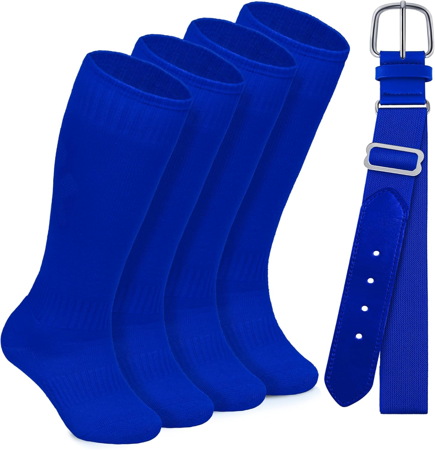 2 Baseball Socks And 1 Belt Set: Toddler baseball socks and belt combo set fit kids boys and girls sizes from 2 to 16 years old for a perfect game-ready accessory solution