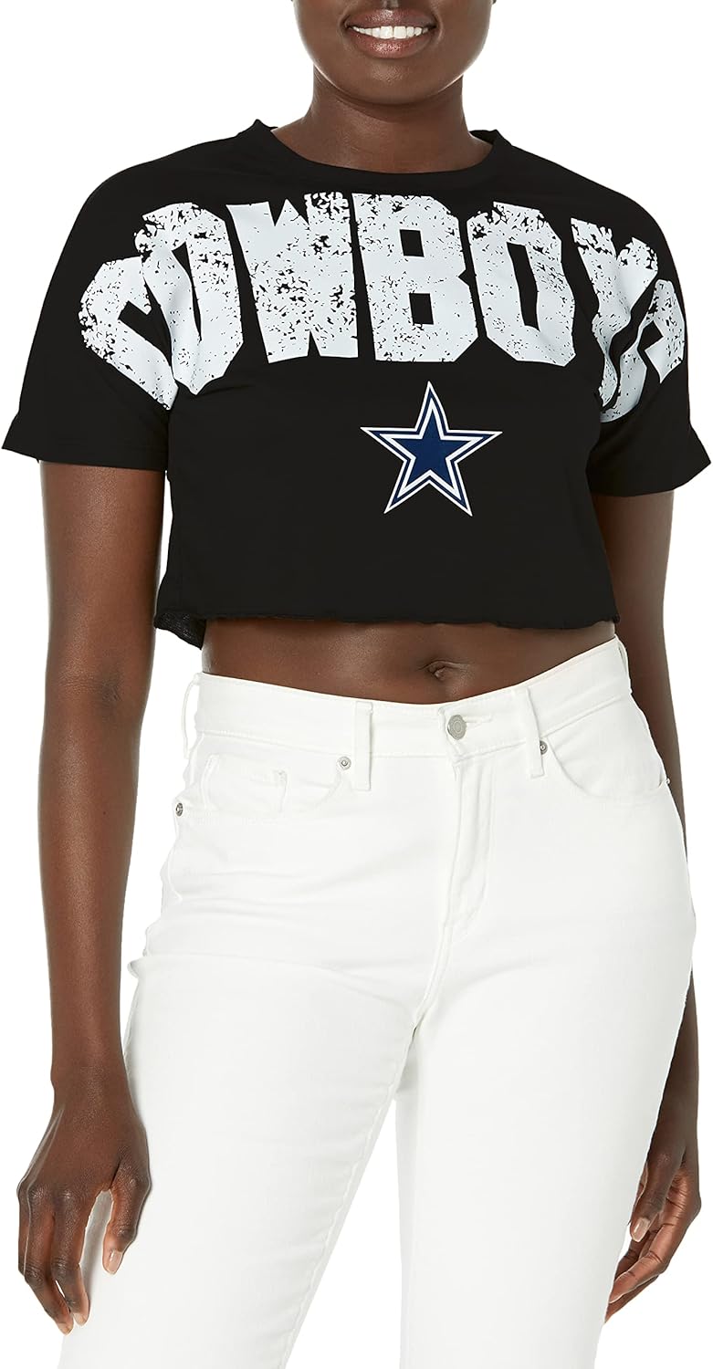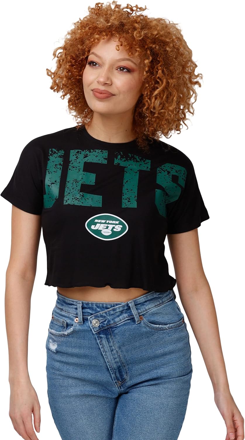 | Style | Nfl Team Logo Ladies Fashion Distressed Wordmark Petite Size Crop Top Shirt |