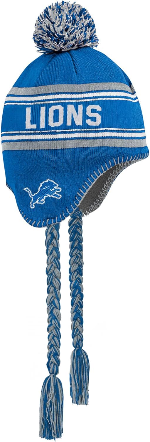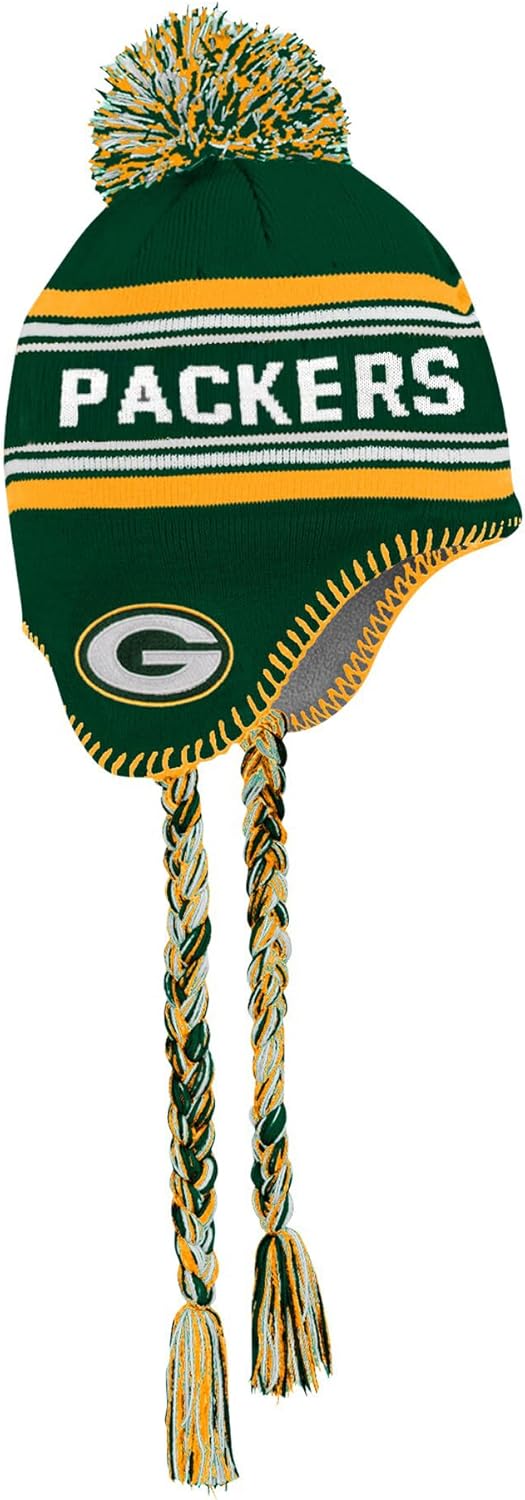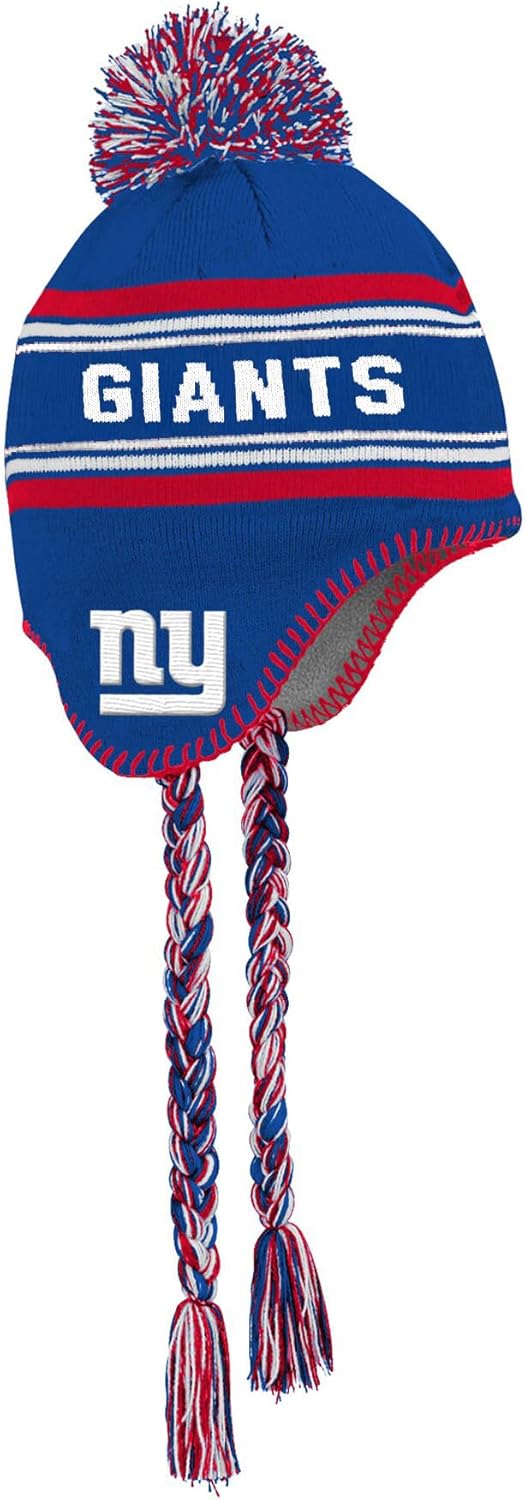 NFL KIDS YOUTH 8-20 TEAM COLOR PRIMARY LOGO JACQUARD TASSEL COLD WEATHER FOOTBALL POM BEANIE KNIT HAT ONE SIZE - Keep your young football fan warm while showing off their team pride with the NFL Kids Youth 8-20 Team Color Primary Logo Jacquard Tassel Cold Weather Pom Beanie Knit Hat. Whether they’re headed to the stadium, playing in the snow, or just walking to school in style, this officially licensed NFL beanie is the perfect winter accessory for kids who live and breathe football. Featuring a high-quality jacquard knit design, this beanie showcases the team’s name boldly wrapped around the crown in large woven lettering, with detailed embroidered logos on each ear flap—so their fandom is visible from every angle. The team-color pom pom on top adds a classic and fun element, while braided tassels hanging from the ear flaps provide both warmth and flair. Kids can tie them for extra coziness or wear them loose for a cool game-day vibe. Crafted from 100% acrylic, the fabric is soft, breathable, and insulating—perfect for cold-weather days. Built to fit most youth ages 8–20, this beanie has a stretchable structure for a secure yet comfortable fit. Whether it’s a gift for the holidays, a birthday, or just to get them excited for football season, this beanie makes the perfect addition to any young fan’s winter wardrobe. Help your child stay warm, look cool, and cheer loud with this must-have NFL tassel pom knit hat.