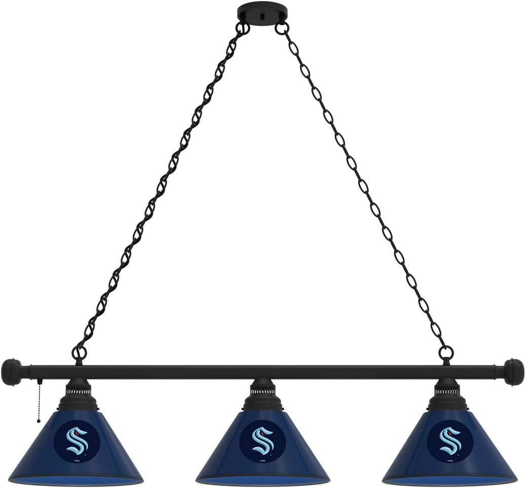 This 3-Shade Billiard Light by Holland Bar Stool is a must have for your game room. Whether above your pool table, game table, or bar, this classic is sure to impress. Measures 54” wide x 14" with shades attached. Features includes On/Off pull chain, 3’ of chain for hanging, ceiling mounting fixture, and 8’ of cord with a 3-pronged polarized plug. Light fixtures are vented to allow heat to escape instead of building around the socket, prolonging bulb life. Decorative molding accent trim on shade rim to match fixture. Lights are UL approved. Brighten up your game room with a classic billiard light from Holland Bar Stool Co.