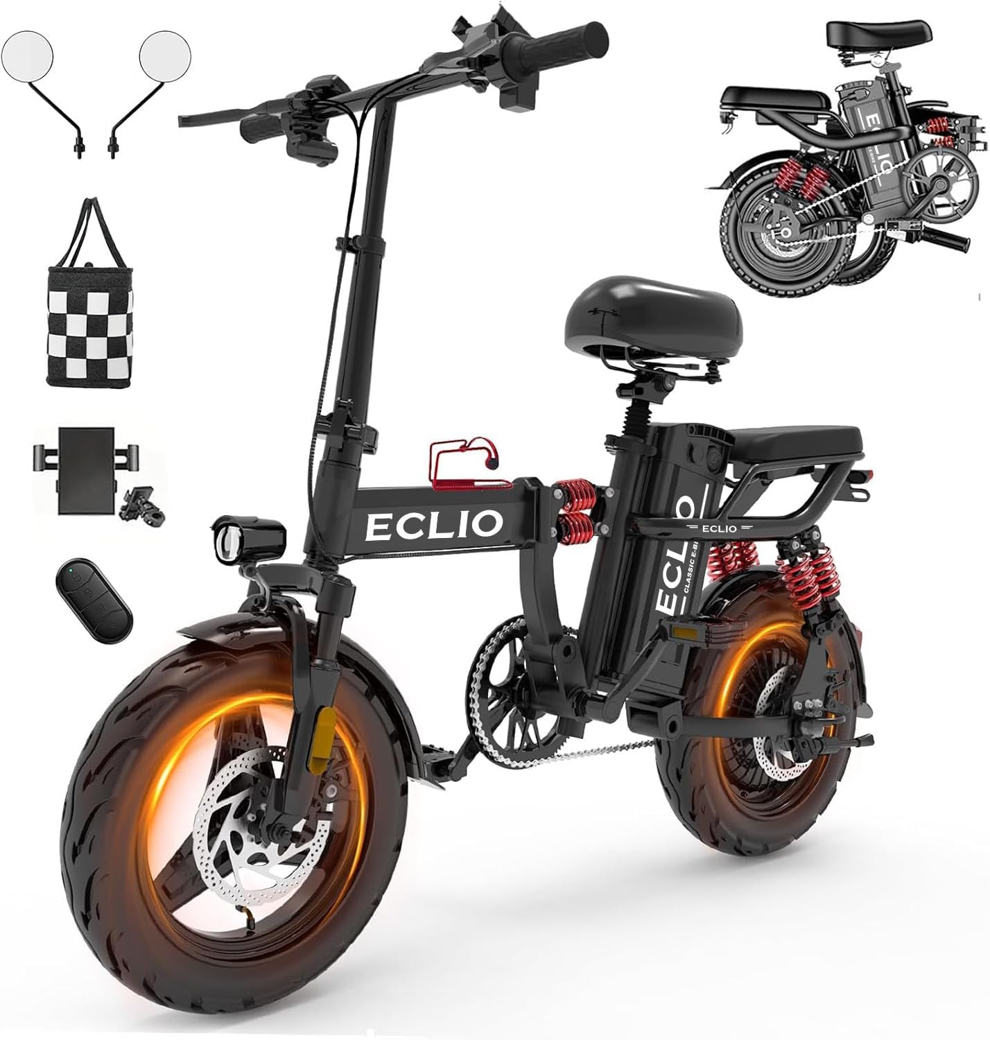 | Included Components | Ebike*1, Battery*1, Charger*1, User Manual*1, Tool Kits*1, Front Carrier*1, Phone Holder*1, Rearview Mirror*2, Bottle Holder*1, Remote Control*1 |