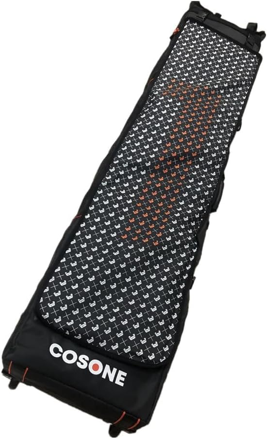 UNISTRENGH Snowboard Bag with Wheels, Waterproof Travel Ski Roller Travel Bag for Skis Skiing Transport BagSpecification:Material: PVC, polyesterWheels: Cold resistant PP MaterialSport: Skiing, SnowboardingColor: Orange, Black1, Black2Dimensions:Length: 64.96 +5.9inch /165+15 cmWidth 12.6inch /32cmWeight: approx. 7.93 lbs /3.6kg*Tips: The ski board bag is suitable for skis up to 66.93inch /170cm in lengthFeature:Humanized Design - Three fixed points, ski single and double board are universal. The Tolle functional board bag for boards with bindings is very suitable for protection against shocks as a ski bag to protect your ski equipment from damage during travel, transport, baggage handling or skiing.Ski Bag with Wheels - Comfortable carrying strap and practical wheels for convenient transport and ergonomic padded carry handles for easy carrying, storage and transport of your ski equipment to the train station, airport, car or slopes.Water-repellent and durable - Ski bag made of waterproof polyester to protect your skis/skis and ski equipment from all weathers.Perfect for snow travel to storage boards, ski poles, snowboard boots, helmets, goggles, snowboard pants, snowboard jackets, gloves, knee pads, armor vests with sleeves, protector pants and tools, etc.Package Included:1 x Snowboard BagNote:1. Care: Hand wash with cold water.2. Tolerance: manual measurement, within 2-3cm deviation.