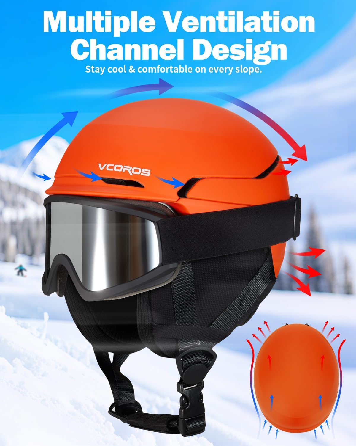 VCOROS DXH-811 Adult Ski Helmet with Goggles – Lightweight Snow Sport Helmet for Men and Women Stay comfortable on the slopes with the VCOROS DXH-811 Ski Helmet. Lightweight PC shell and shock-absorbing EPS foam offer protection, while vents, removable padding, and adjustable fit keep you warm and comfortable. About the Helmet Model: DXH-811 Snow Sport Helmet Material: Durable PC outer shell with high-density EPS foam Safety Standard: Meets ASTM F2040 snow sports safety certification. Available Sizes S: 52–55 cm / 20.47–21.65 in M: 55–59 cm / 21.65–23.23 in L: 59–62 cm / 23.23–24.41 in Measure Your Head for the Right Fit: Wrap a tape measure around the widest part of your head, ~1.5 cm (0.6 inch) above your ears. Key Features: Lightweight Design: 0.44 kg (0.96 lb) for long-lasting comfort Airflow & Comfort: 10 vents provide ventilation Removable & Washable Liner: Soft, insulated lining and ear pads can be removed for cleaning. Adjustable Fit System: Rear dial and chin strap for a snug fit. Goggle Compatibility: Rear clip at the back holds OTG-style goggles securely. Color Options Choose from six color styles to match your winter gear and personality: Matte Black Gloss White Matte Gray Matte Pink Matte Blue Matte Orange Each VCOROS snow helmet includes matching ski goggles (black frame + silver lens) About the Goggles: OTG Design Anti-Fog Double-Layer Lens 8–18% (VLT) 100% UV protection Package Includes 1 × VCOROS DXH-811 Ski Helmet 1 × Matching Ski Goggles (Optional Ski Mask for Matte Black & Gloss White Helmet Goggles Set) Please confirm the product images and description before purchase to see which accessories are included. Customer Support Contact VCOROS Customer Support for questions on sizing, colors, or accessories.