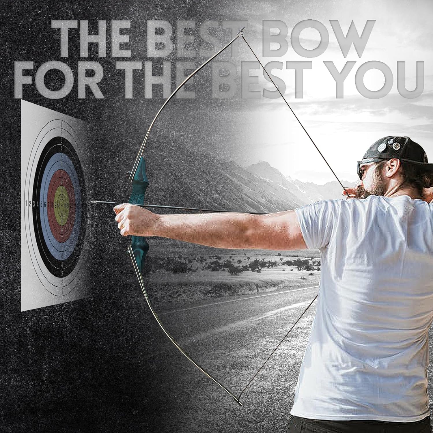 Specification: Bow length: 60 inches Max Draw length: 30 inches Bow riser length:15 inches Brace height:6.8-7.8inches Weight:1000g Draw Weight : 20lbs,25lbs,30 lbs, 35 lbs, 40 lbs, 45 lbs, 50 lbs, 55 lbs,60lbs Bow riser color:Green Bow limb color:Black Bow String Material: Dyneema Bow Riser Material:Colorful high-density technology wood Bow Limbs Material: Black glass fiber + bamboo sheet (high temperature and high pressure pressing) Package : 1 x Takedown longbow 1 x Bow stringer 1 x Arrow rest 2 x Bowstring silencer 2 x Limb silencer 1 x Arm guard 1 x Finger guard 2 x String nocks 12 x Arrows 6 x Target paper(40*40) 1 x Bow bag 1 x Wrench 2 x Screws Warm notice: The bow is delivered with riser / limbs / string. You need to assemble them by yourself after you received them. It is forbidden to draw the bow but not discharge the arrow. Do not exceed the draw weight, or it will damage the limbs. Do not attach the arrow to the bow for a long time, or it will reduce the draw weight. There might be slight measure difference due to manual measurement error. Due to the problem of the monitor, the real object may have a colour difference from the picture.