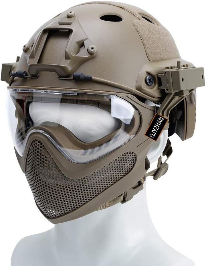 Product weight: 900g Helmet-ABS Engineering Plastic Face shields - Thermoplastic Polyurethane (TPU) Lenses - Polycarbonate Plastic (PC) Helmets and face shields can be freely disassembled! Simple and fast operation Comfortable and ventilated design, easy to install Versatile: The tactical helmet is perfect for outdoor activities like airsoft, paintball, hunting, CS, etc. If you have any questions, please contact us in time! We will serve you wholeheartedly! 100% Customer Satisfaction Guarantee: If you have any questions, please do not hesitate to contact us and we will immediately correct the situation or provide a refund/exchange.