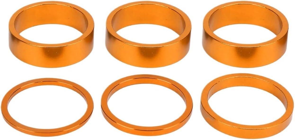 Specification:Item Type: Bike Headset Spacer SetMaterial: Aluminium AlloyInner Diameter: Approx. 28.6mm / 1.1inExternal Diameter: Approx. 34.0mm/ 1.3inThickness:2mm / 0.1in3mm / 0.1in5mm / 0.2in10mm / 0.4inProduct Weight: Approx. 29g / 1.0ozCompatibility: Suitable for fork tubes with a diameter of 28.6mm / 1.1inPackage List:6 x Spacer