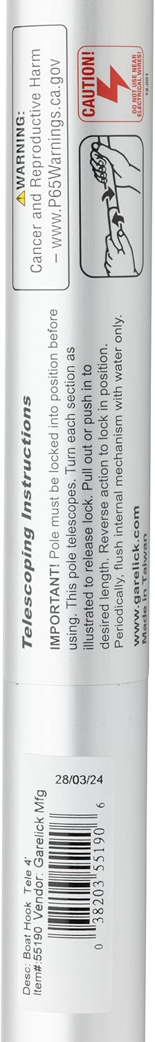 Telescoping Boat Hook Extends from 4'; to 7.5';. 2 sections. Marine composite. Lifetime warranty.