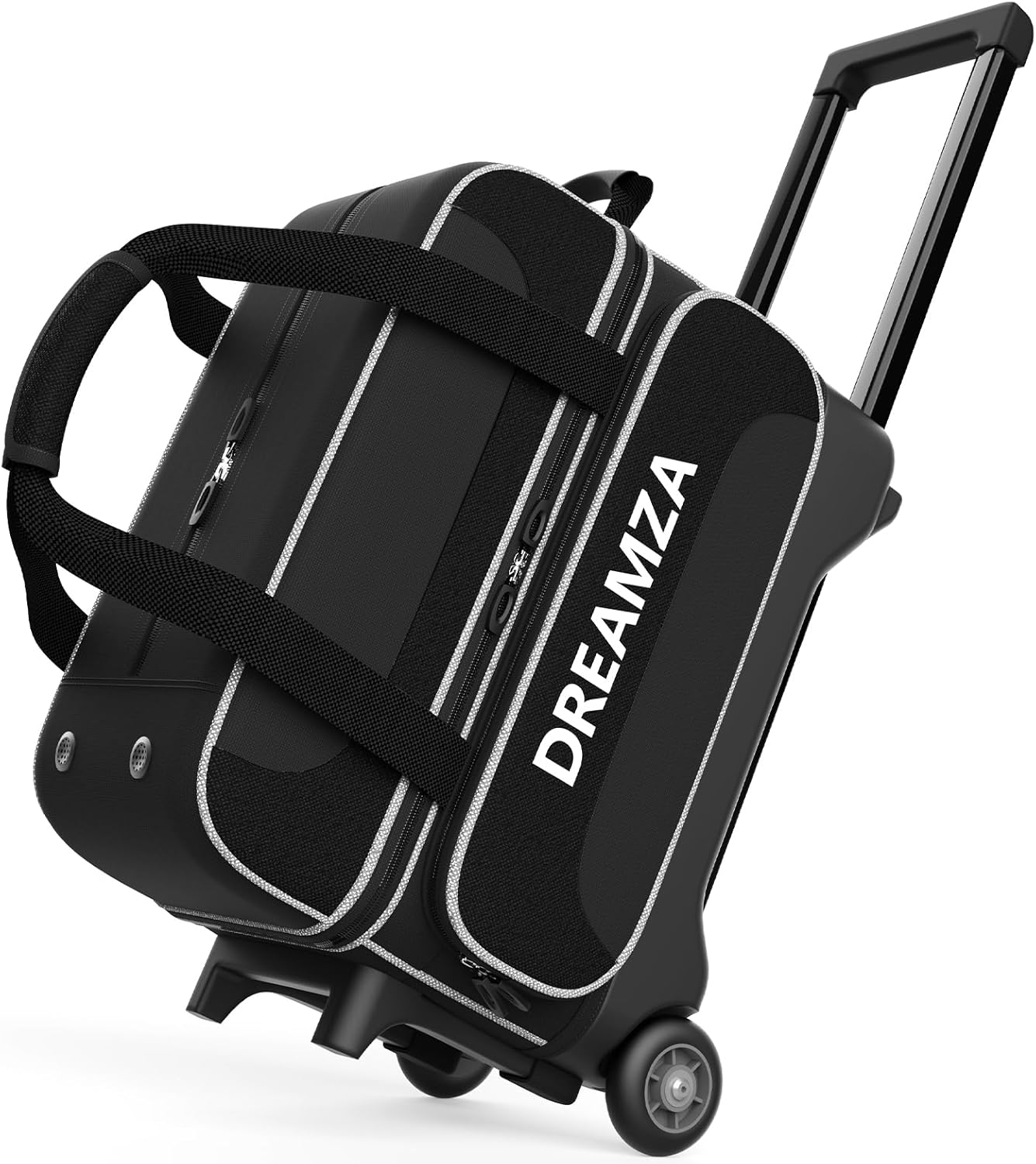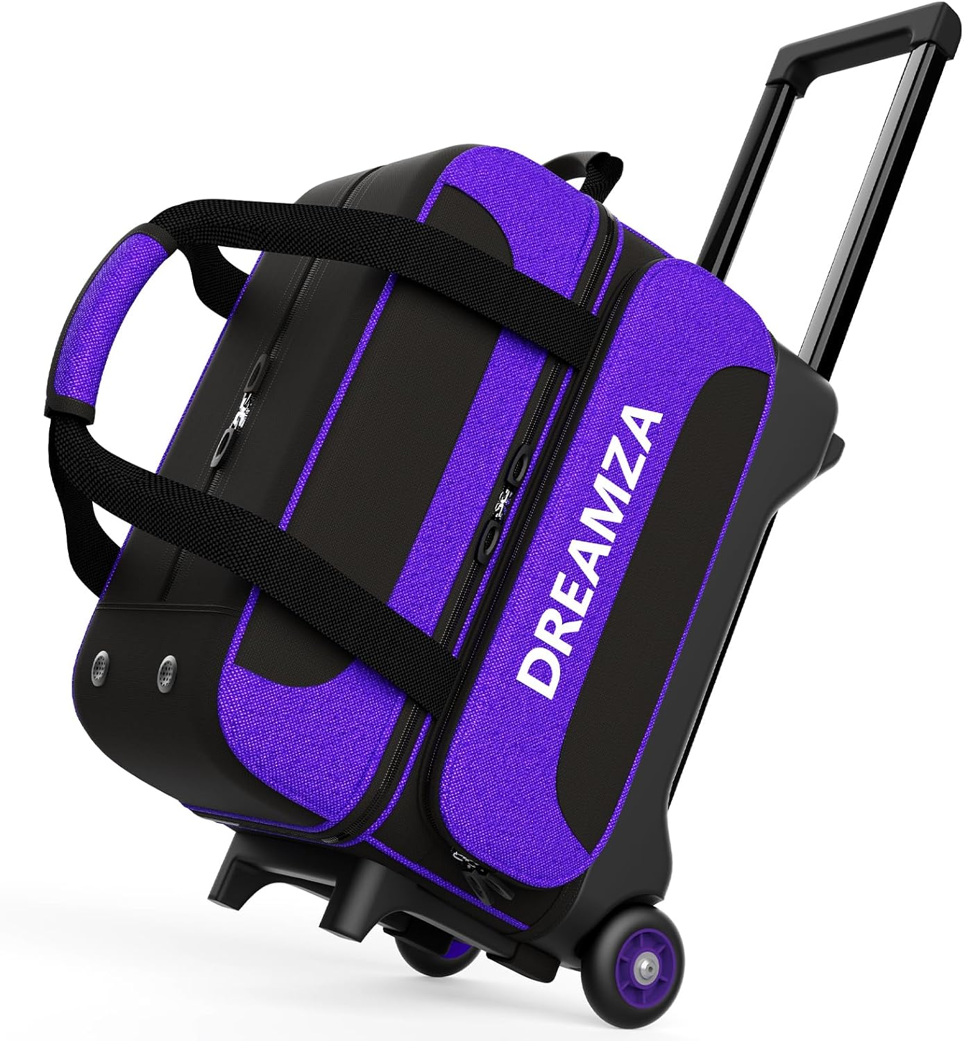 Looking for a bowling bag that combines style, durability, and everyday convenience? Dreamza 2-Ball Roller Bowling Bag is thoughtfully designed to make every game smoother - from practice nights to weekend tournaments. Forget about tipping bags or wobbly rides - this bowling bag's reinforced structure keeps everything stable, no matter how much you're carrying. The upgraded silent wheels roll smoothly on any surface, so you can move through parking lots, hallways, or bowling alleys with ease and without noise. Inside, a molded double ball holder with a thick divider keeps your bowling balls secure and protected from scratches, while extra pockets allows you to store shoes and accessories. The telescopic handle extends up to 40", making it comfortable to pull for bowlers of all heights. Crafted from premium materials and finished with excellent workmanship, this bag is built to last season after season. Whether you're joining league night, traveling for a tournament, or just heading out for casual fun, Dreamza Bowling Ball Bag gives you confidence, convenience, and a touch of style every step of the way.