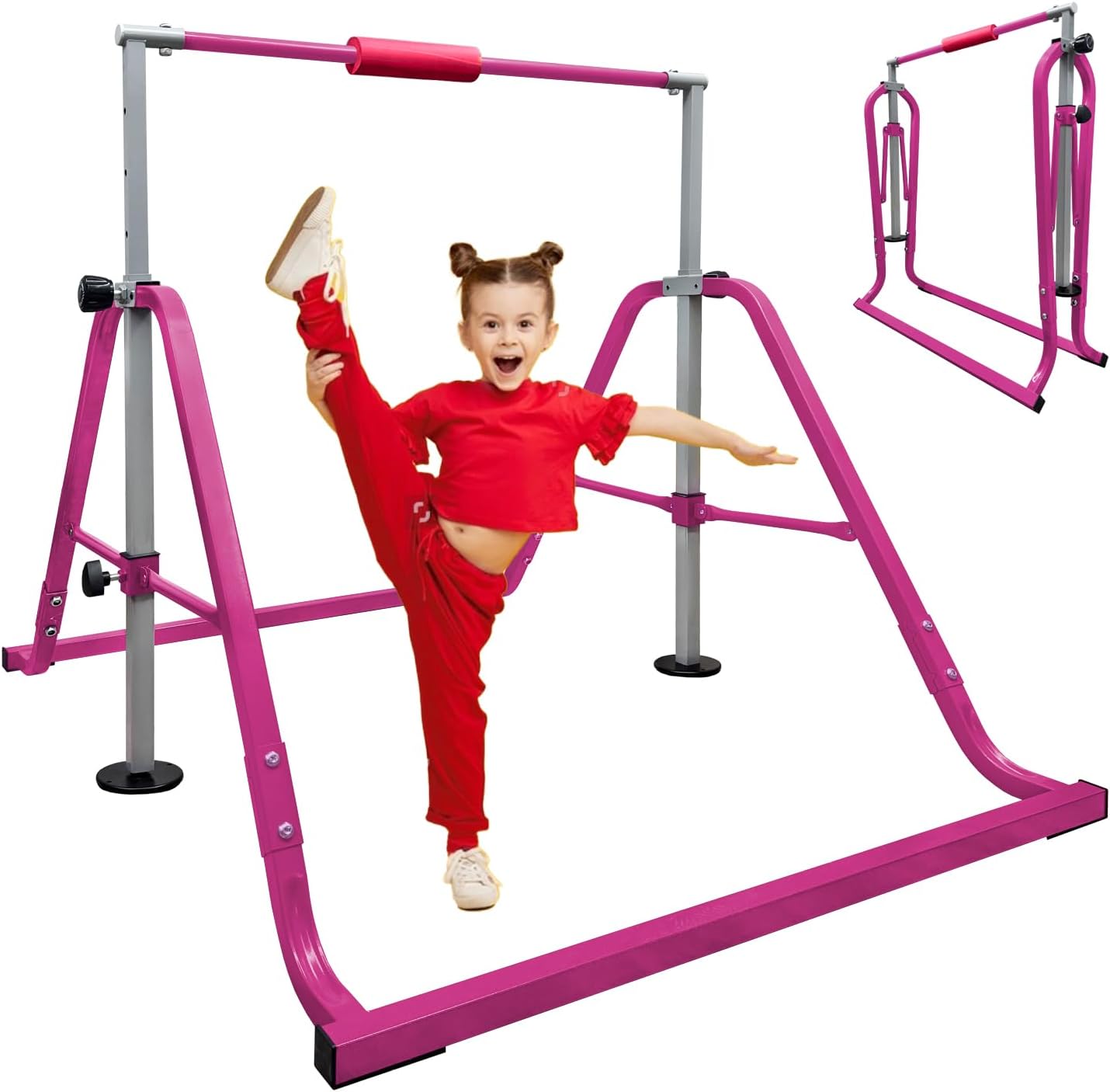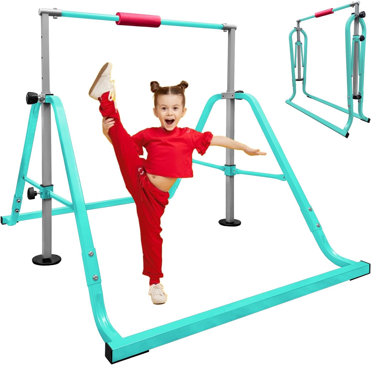 GLANT gymnastics bar is designed for beginner aged 3-9 years old. It is great for gymnastic training and performing, will be a great choice to your little gymnast! ★Excellent GLANT gymnastic bar: 1,Ideal for gymnastic training: Gymnastic training needs lots of hard work and patience for those kids who want to improve their skills. With our horizontal bar, your little gymnast will get lots of fun during this hard process. 2,EASY ASSEMBLE: This gymnastic bar can be assembled in minutes, so you can set it up wherever you need to. It can also be folded for storage. Put it in your garage or shed while it’s not in use. 3,STABLE and STURDY: Our premium folding gymnastic bar ensures your kids safety while exercise on it. It has heavy-duty galvanized steel tubing frame and non-slip rubber ring offer great stability and sturdiness. 4,HEIGHT ADJUSTABLE: This gymnastics bar for girls and boys can easily adjust height from 32'' to 51'' with quick-adjust knob, so you can set it to your child’s height and frame. It works for children of various ages, including toddlers and many grade kids. ★Specification of expandable gymnastics bar: a.Material: Heavy-duty steel tube b.Color available: Purple&Pink&Teal c.Suitable age: 3-9 years old d.Adjustable height: 32'',35'', 40'', 42 '', 46'' and 51’’ e.Weight limit: 190lb f.Product Dimensions: 57''X40''