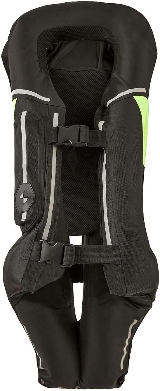Motorcycle airbag vest with airbagsSize: S-2XLColor: black, greenSuitable for all -weather outdoor cyclingThe package includes: motorcycle airbag vest X 1Note: Not equipped with CO2 gas cylinders, the vest is suitable for 33G CO2 gas cylinders.