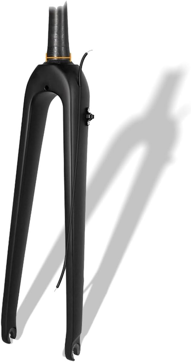Carbon Fiber Road Bikes Rigid Fork 700C Gravel Hard Fork Disc Brake 9*100mm Quick Release Front Fork 1-1/2 Tapered Steerer Tube ThreadlessGravel Bikes Rigid Fork Information:Color: Black , Red , WhiteSize: 700CMaterial: T800 carbon fiberSteerer tube type: 1 1/2" tapered(threadless)Steer Tube Diameter: 28.6mmSteerer tube lenth: 300mmQuick Release: 100mmApplicable tires: max 700C*32C tiresBrake: Flat mount disc brake (Brake Column Hole Spacing 70mm)Offset: 40mmCable: Semi-hidden internal routing.Scope of application: Road bikes/gravel BikesPackage:Rigid Fork x 1Note:1. Please allow slight dimensional tolerances due to manual measurements, lighting in photography may cause color differences from real life.2. Please check the size details in our list carefully according to the actual condition of your Bikes to make sure you buy the fit fork.3. Due to different production batches, there may be slight differences in the color, appearance, shape, and details of individual parts. If you have any questions, please feel free to contact us, thank you!