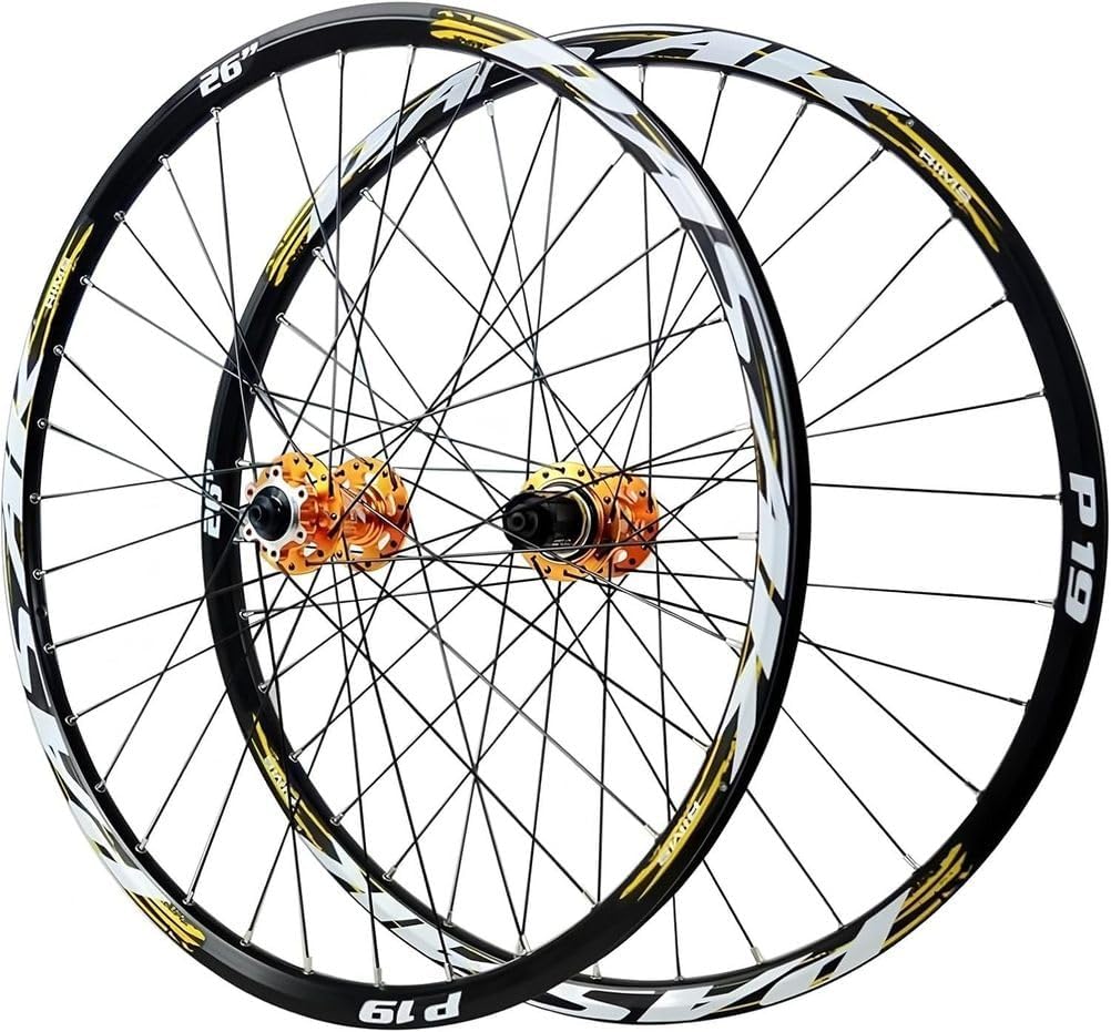 DESCRIPTION OF THE RADSATZ:Product: Bicycle Wheelset (Disc Brake)THAT category: SpotSize: 26/ 27.5/ 29 inchesHG-Nabe: Rapid release, 7-12 speedMaterial: Aluminum alloyNumber of holes: 32HRim: Double-walled aluminum alloy rim. Withstands 420 lbs of tensile force.Warehouse: Front 2 warehouses / Rear 4 - warehouseFront hub: 100mm, rear hub: 135mmNabe: Drilled disc clutch seat, the distance of the drilled screw axis is 44 mm.Air nozzle: beauty mouth according to international standardsCompatible: 7-8-9-10-11-12 speed cassettesApplication: Mountain bike, racing bike, city bikeSize: 1.25~2.25" tiresWeight: 2150gColor: Black, Blue, Gold, Red, ColorfulPackage Included:Pair of rims * (1 pair)Quick release lever * (1 pair)Tire Pads * (1 pair)