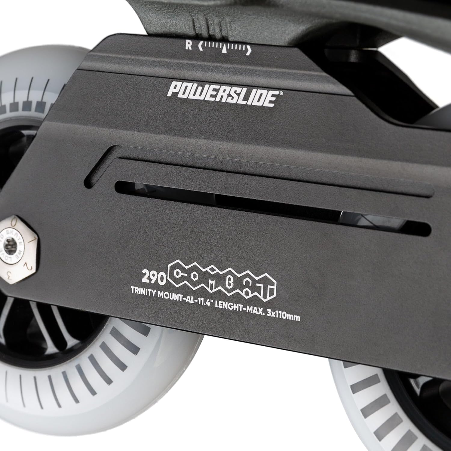 Don’t just explore the city, attack it in the POWERSLIDE NEXT Charcoal 110 urban freeride skates, complete with the Combat rocker frame that allows you to carve and turn like never before. This advanced skate is based on the renowned NEXT hardboot that’s known for its customization options, durability, and comfort. The boot is accompanied by a strong and supportive cuff that’s height adjustable. The cuff also allows you to adjust the skate’s forward flex, helping ensure the skate matches your personal skating style and improving overall performance. Skate faster, turn quicker, jump higher, and do it all in amazing comfort. The POWERSLIDE NEXT Charcoal 110 includes the MYFIT Reaction dual fit liner that’s incredibly comfortable while giving your foot extra room. Of course, this advanced urban freeride inline skate is engineered with the TRINITY 3-point mounting system that provides a low center of gravity that improves stability, control, and power transfer. TRINITY also allows you to adjust the frame position under the skate to further advance your skating performance. At the heart of this impressive urban inline skate is the Combat rocker frame. The innovative frame has hexagon-shaped rocker spacers, allowing you to change the position of all wheels individually in 6 different positions. It’s common knowledge that 3-wheel setups are more agile than traditional 4-wheel setups, and HXG rocker technology brings it to a whole new level. Complete with fast and 110mm/88A Spinner wheels and smooth WICKED ABEC 9 bearings, this skate is ready to show you what urban freeride skating is all about. The NEXT Charcoal 110 gives you unmatched urban performance and the power to personalize your skate like never before. Please note, there is no brake compatibility due to rocker frames.