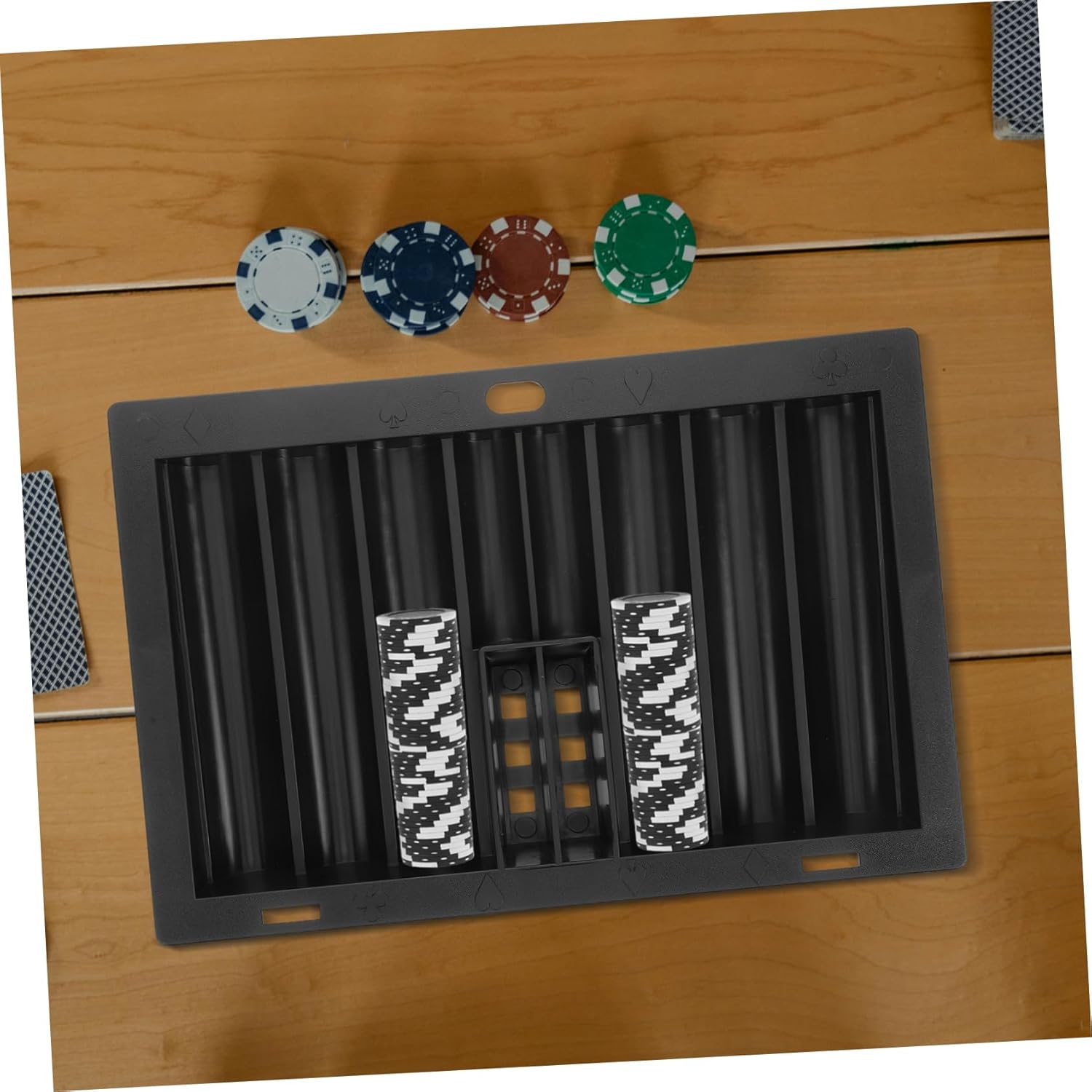 Package List 1 x chip box Features -Note: One tray can hold 350pcs chips poker chip case -Material:Acrylic poker chip trays -Color:Black poker chips case -Sturdy construction: crafted from , the chip tray is built to last and withstand frequent use poker chip display case. -Efficient organization: the poker chip case helps you keep your chips organized, enhancing your gaming experience poker chip tray. -Portable design: the compact and portable design of the chip tray makes it easy to transport and store poker chip case empty. -Clear visibility: the transparent design of the chip holder lets you monitor chip quantities card tray. -Size:37.00X25.20X5.00cm/14.54X9.90X1.97in poker tary -Versatile application: ideal for poker and other games, the chip tray offers flexible storage poker chip holder.Goods Informationpoker chip holder The clear construction provides a sleek look while allowing you to see your chips .chip holder Our poker chip tray is not just for poker enthusiasts; it’s a multi-functional storage for various board games.card tray The compact design makes it easy to carry and store, can enjoy your favorite games anywhere