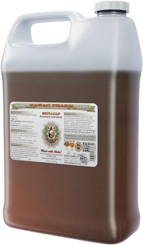 This Skullcap Veterinary Natural Alcohol-FREE Liquid Extract made from Certified Organic Skullcap (Scutellaria lateriflora) Dried Herb. Any statements on this page have not been evaluated by the Food and Drug Administration. This product is Herbal Supplement and is not intended to diagnose, treat, cure or prevent any disease. We recommend that you consult with a qualified veterinarian before using this or any other herbal products.