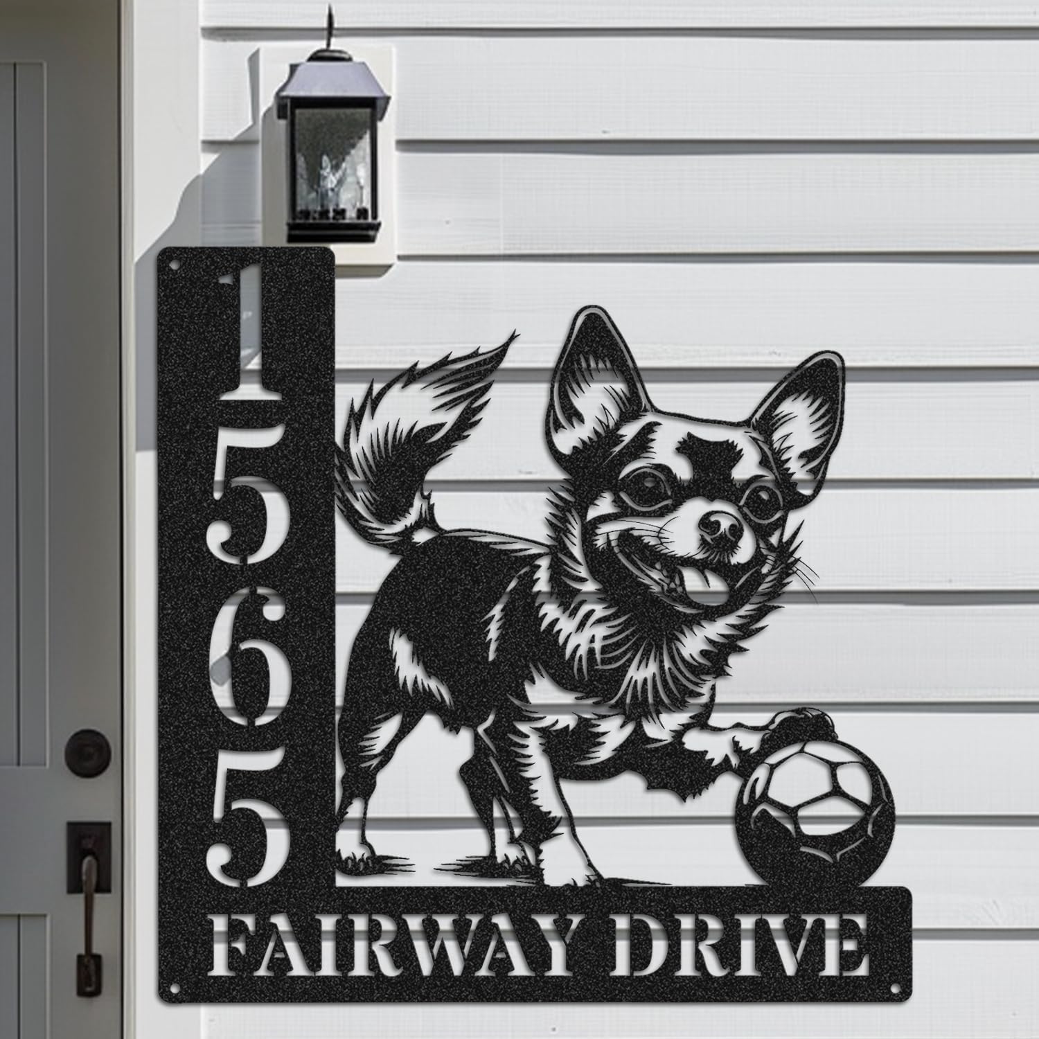 Brighten up your home’s exterior with a custom metal address plaque featuring a playful Papillon chasing a ball. With its signature butterfly ears and lively personality, this design adds charm and elegance to your yard, garden, or front entry. Crafted from durable, weather-resistant metal, it’s built to last outdoors while showcasing your house number in style. A lovely personalized touch—and a perfect gift—for Papillon lovers who want their home decor to feel extra special