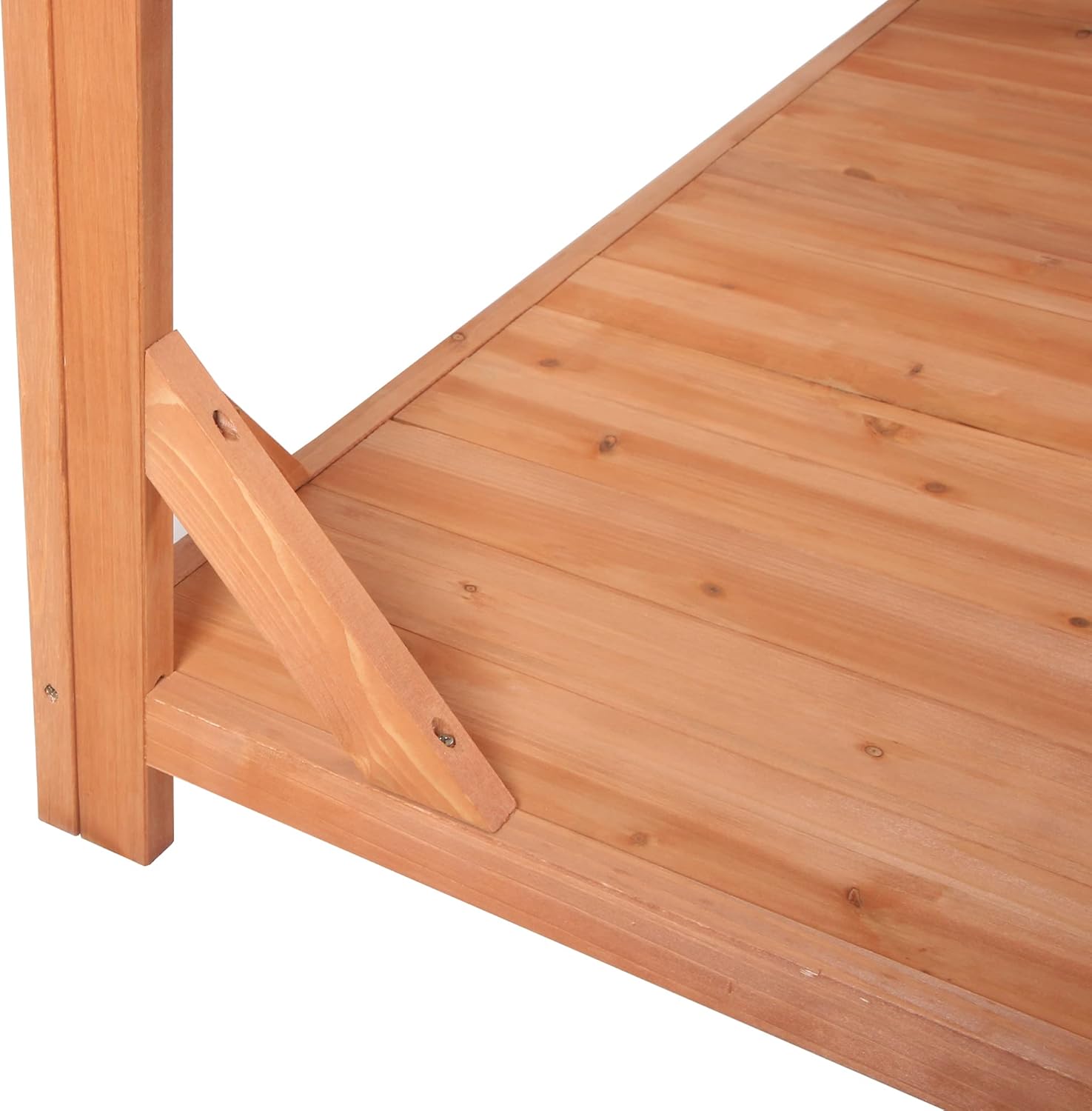 65" Large Wooden Farmhouse Rustic Outdoor Potting Bench Table, Patio Workstation, Bench with 4 Storage Shelves and Side Hook,Natural