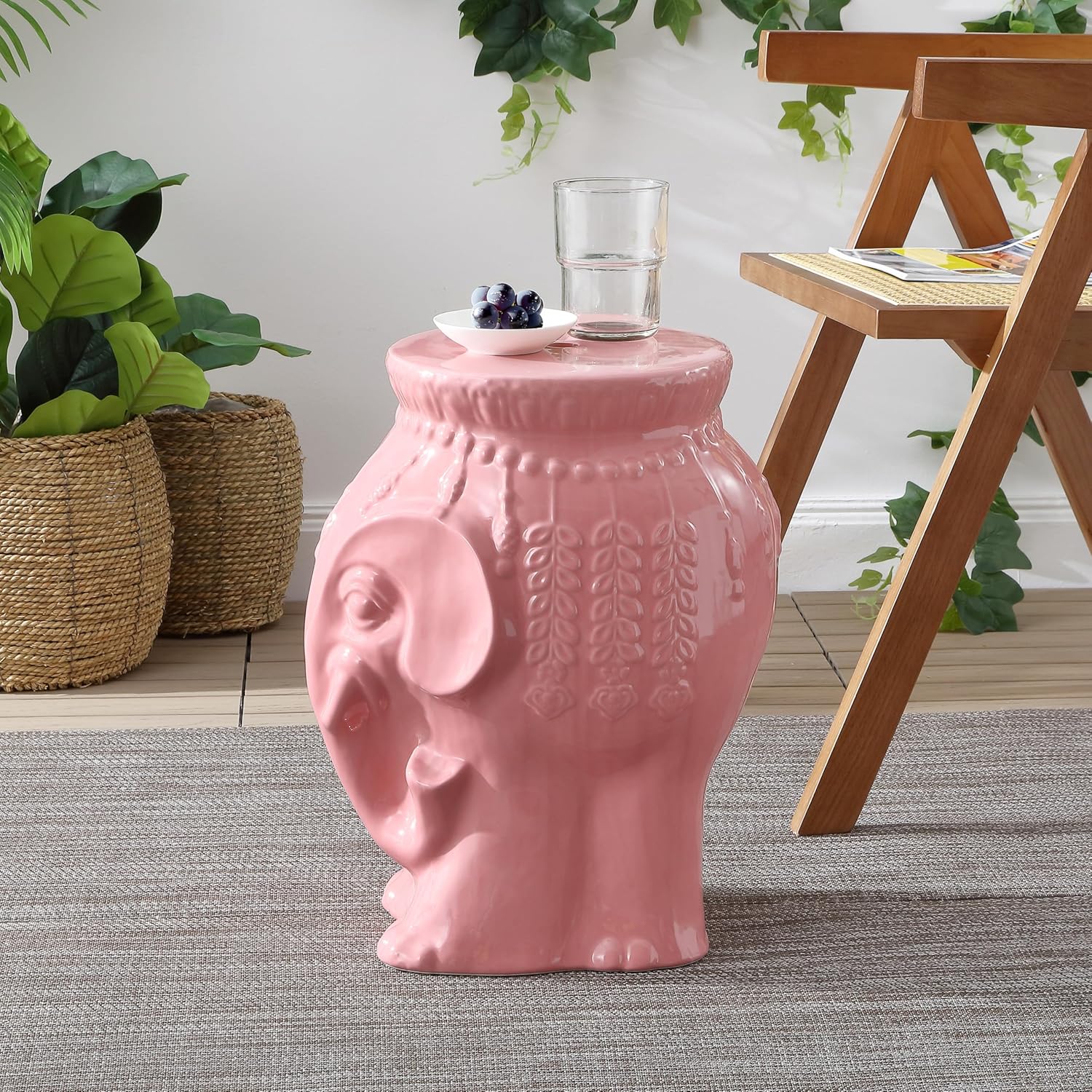 Your favorite mid-century ceramic elephant stool is back with a modern, Bohemian flair. Use it indoors or outdoors as a cocktail table, garden seat, or plant stand. This charming accent table is perfect for the living room, bedroom, bathroom, or porch.