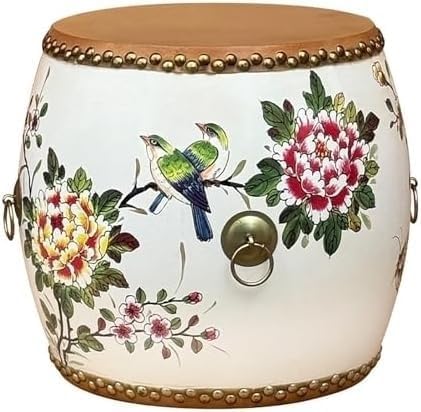 ELEFOCUS Chinese Drum Stool Classical Footstool Decorative Garden Stools Glazed Hand-Painted Drum Stool Can Support Up to 300lb(White 10)