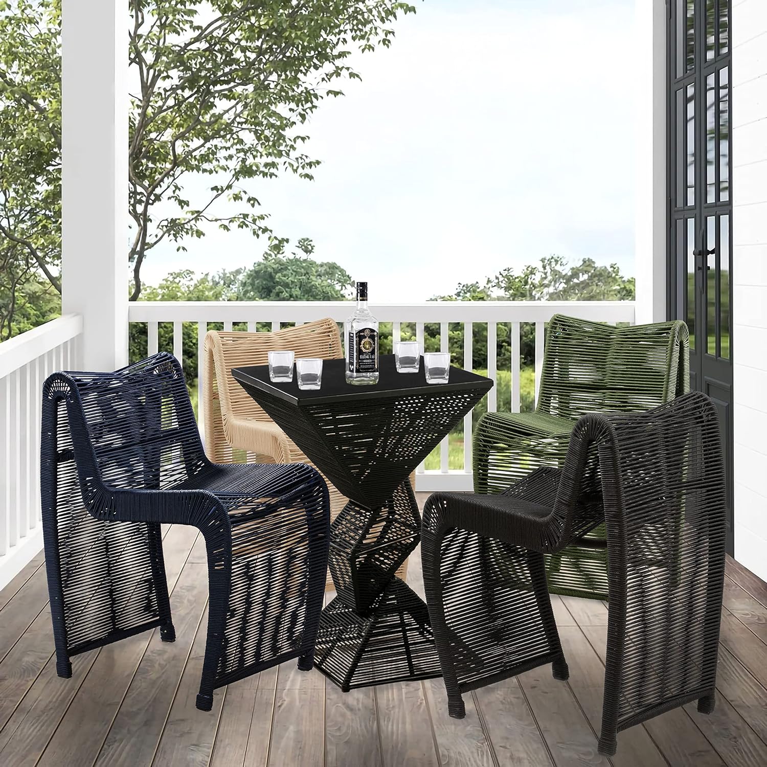 Elevate your outdoor space with the Lorenzo Rope Outdoor Patio Counter Stools. Their eye-catching design and vibrant colors are sure to impress. Made from durable rope and a sturdy iron frame, these stools are perfect for both indoor and outdoor settings. Transform your patio into an inviting retreat where you can relax with a book or enjoy intimate conversations. The combination of a powder-coated iron frame and intricately woven rope ensures long-lasting quality and style. With the Lorenzo counter stool set, you'll create a favorite spot for years to come. Choose exceptional – choose Lorenzo.