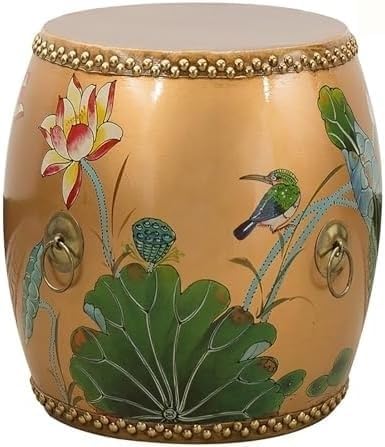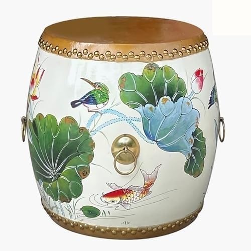This stool is crafted from premium ceramic and can be used both outdoors and indoors. It serves as an extra seat, footstool, small table, plant stand, cocktail table, and more—it can meet any need you can imagine.Product specifications:Product name:garden stool/plant stool/drum stool/garden stool side tableProduct material: solid poplar + top-grain cowhide leatherDrumhead size: 12.6 inchesDrum body size: 15.75 inchesDrum height: 17.72 inchesProduct weight: approximately 5 kgApplicable scenes: patio, garden, living room, bedroom.Note:1. Due to manual measurement, there may be a 1-3 cm margin of error.2. Colors may appear slightly different on different monitors.