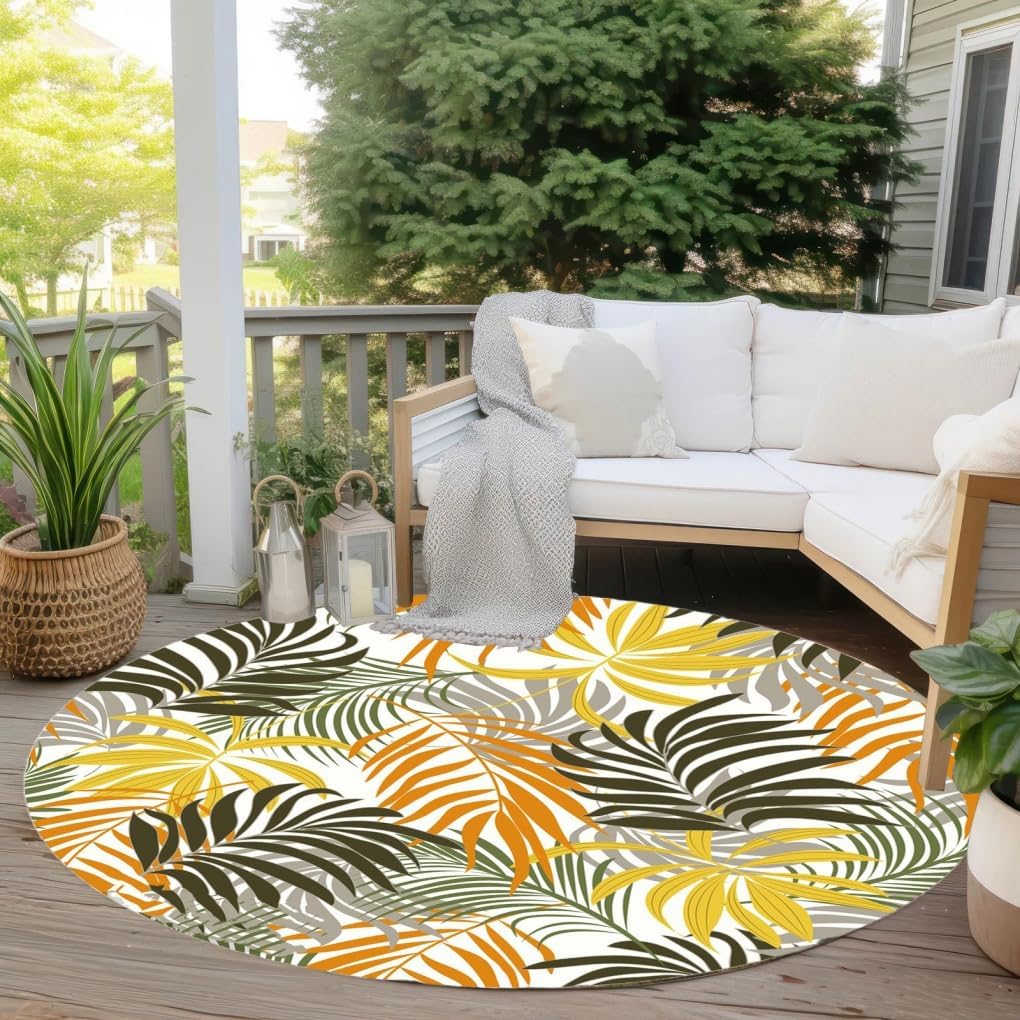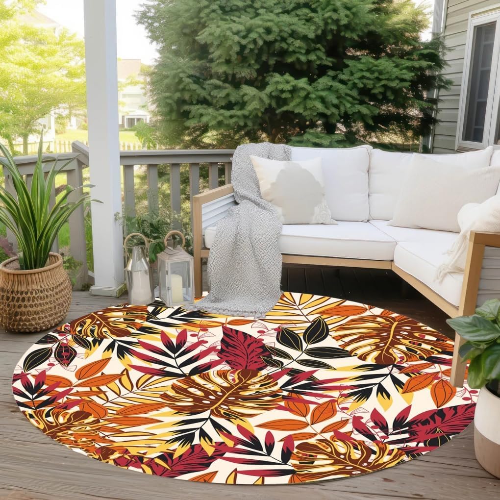 Round Tropical Botanical Country Rustic Flowers and Leaves Multicolor Indoor Outdoor Area Rugs for RV Camping Garden Patio Deck Balcony Porch Square Area Rugs Washable Soft Thick No Slip Waterproof Reversible Livingroom Bedroom Diningroom Office Floorcover Carpet Kitchen Laundry Bathroom Hallway Runneer Rug Mats.
