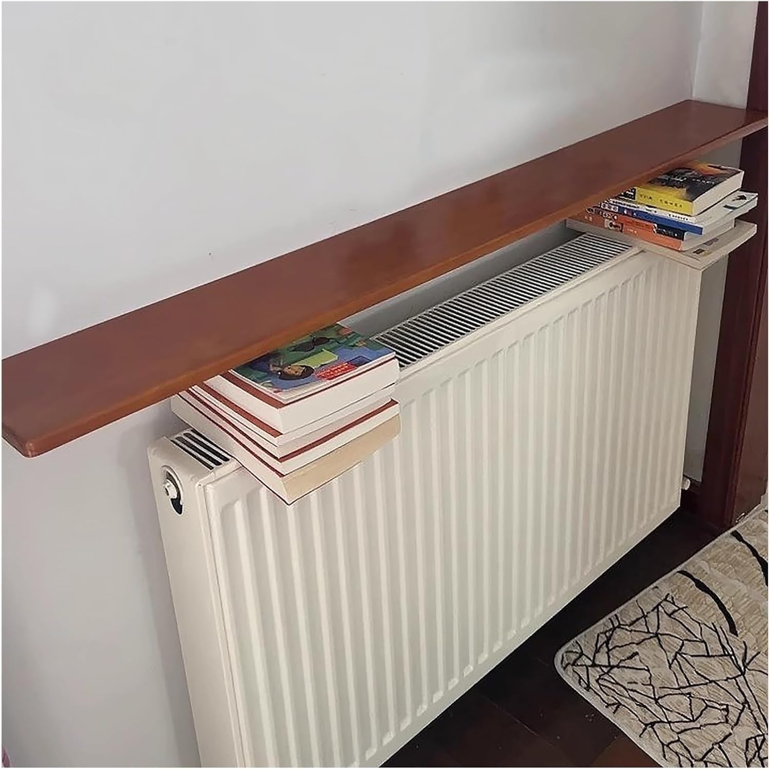 This radiator cover for older radiators combines safety and style, with a heat-resistant coating ensuring safe use even in homes with young pets. Whether you have a vintage cast iron radiator or a modern heating systems, this cover blends seamlessly into any room, enhancing the aesthetics and efficiency of your home's heating.Transform your radiator into a decorative element while ensuring safe and efficient heating. Whether in a family room, bedroom, or kitchen, this radiator cover for older radiators blends seamlessly into any space, combining practicality and aesthetics.Product Parameters:Material: Solid WoodColor: Teak White WoodShape: RectangleStyle: ModernWidth: 16cm(6.3in) 20cm(7.9in)Height: 2.2cm(0.9)Length: CustomSize: Length × Width × ThicknessLoad Capacity: 50KG/110LBSNote: Radiator Shelf Length=Radiator Length+ 10cm(3.9in)Package Includes:1 × Radiator Shelf 2 × Bracket 4 × Screws( Radiators and decorations in the picture are not included. )