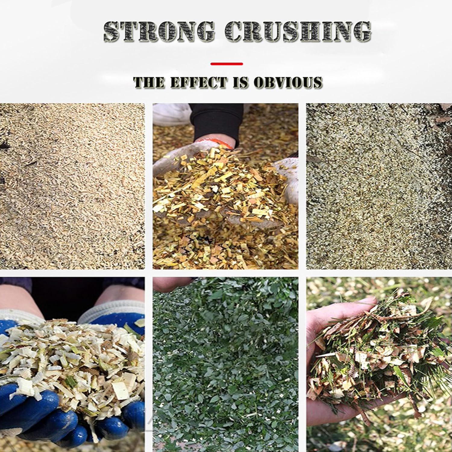 Parameters Voltage: 220V Power: 4.5KW Rated current: 18A Maximum diameter of broken wood: 2.36inch(60mm) Production capacity: 661-1102lbs/h (300-500kg/h) Spindle speed: 1400r/min Feed inlet size (broken wood): 4.33*4.72inch/110*120mm (detachable) Feed inlet size (crushed grass): 8.66*7.09inch/ 220*180mm (detachable) Screen size: 0.78inch(20mm) Discharge port size: 9.84*7.48inch(250*190mm) Number of knives for crushing wood: 4 Diameter of scrap wood blade: 16.5inch(420mm) Wood cutter material: Alloy steel Size of wood cutter: 3.54*2.75*0.3inch (90*70*8mm) Straw chopper: 3 Hammer: 12 pieces Circuit breaker (self-supplied): 45A