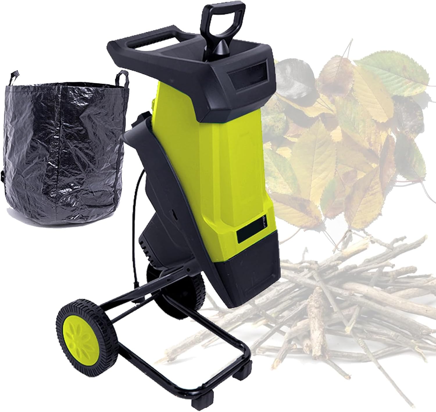 Transform your yard cleanup with powerful 2400W Electric Wood Chipper and Shredder! Designed for efficiency and ease, this machine quickly turns branches, leaves, and garden waste into valuable mulch. Make yard work faster, cleaner, and more efficient with this all-in-one garden tool.Product Selling Points:- Powerful 2400W motor and 4500 RPM speed for fast and efficient shredding.- Reinforced dual-blade cutting design easily mulches branches, leaves, and shrubs.- Handles wood and garden waste up to 40mm thick.- Large 50L collection bag for convenient cleanup and minimal mess.- User-friendly design with smooth feeding and reduced vibration.Product Parameters:Power: 2400WVoltage: 110V/220VNo-Load Speed: 4500 RPMMaximum Branch Diameter: 40mmNoise Level: 110 dBCollection Bag Capacity: 50LWeight: 10.7 kgPackage Dimensions: 64 x 32 x 38 cmPacking List:1 X Electric wood chipper1 X Wheels and wheel covers1 X Ejector rod1 X Axle1 X Bracket1 X Wrench1 X Instruction manual