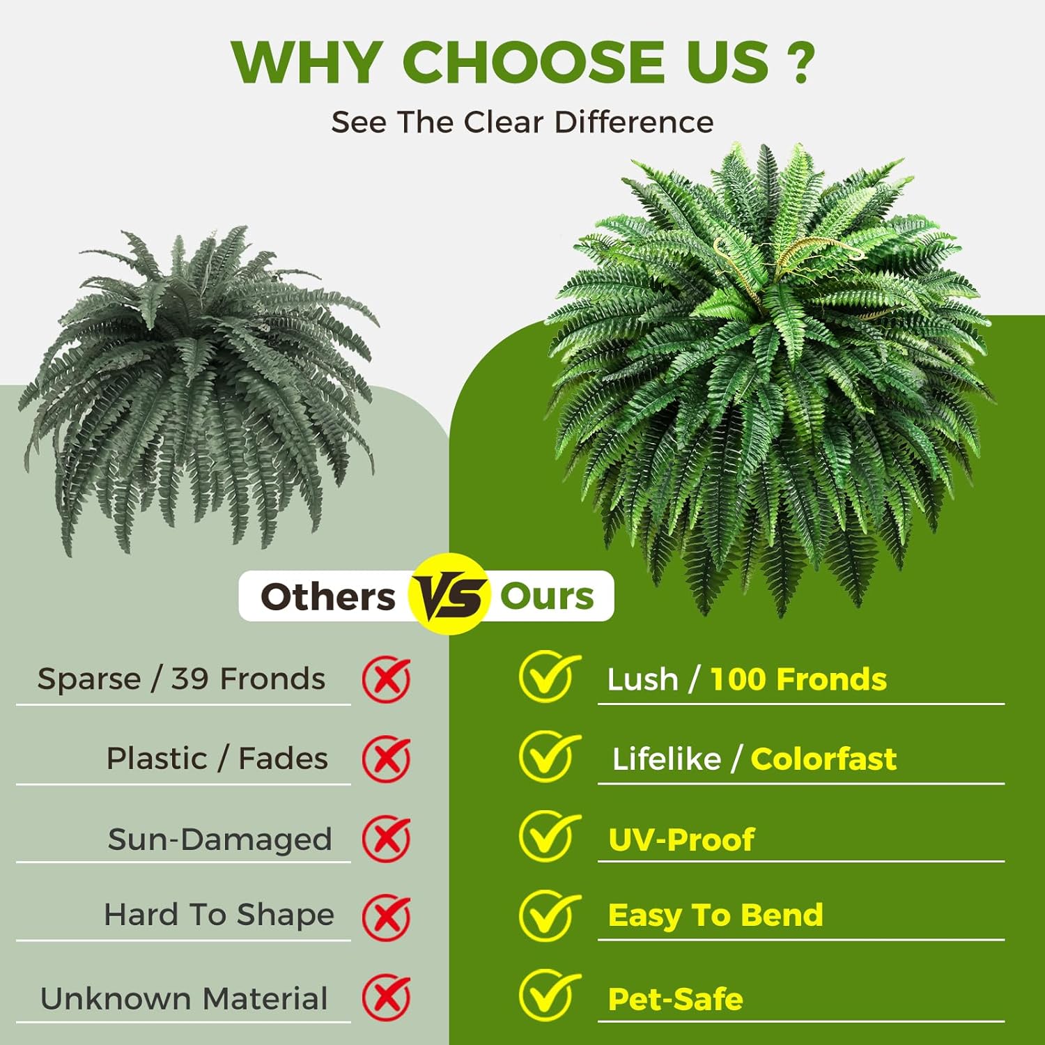 Rolling Gardening Stool with 360° Swivel Seat & Backrest, 48" Artificial Ferns 2 Pack with 100 Bendable Fronds