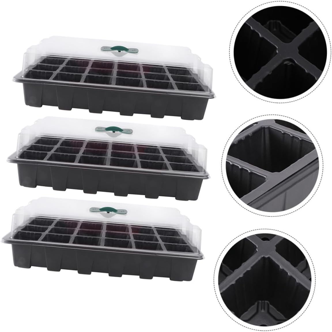 Package List 3 Sets x Trays Features - Color: Black. -Product Info:Seedling dish set - Size: About 36.50X23.00X10.50cm/14.34X9.04X4.13inch. - Material: PVC, . - Equipped with the holes at the container to ensure the breath and prevent being decay Case. - Manufactured with material, it is practical and durable. - Provide the plant with better nourishing space, and it is a great tool for those who love gardening Planting Container. - Suitable for starting seeds, growing , and salad leaves Gardening Supplies. - Equipped with the transparent designed for maximum light penetration and the best viewing of your plants Tray.Goods InformationTray It is made from plastic material.Sprouting Case box is easy and convenient for your daily use.Planting is also very convenient to operate.Planting Container Insulation cover works well to keep a humid and warm environment for seedlings, great for getting your and plants underway early