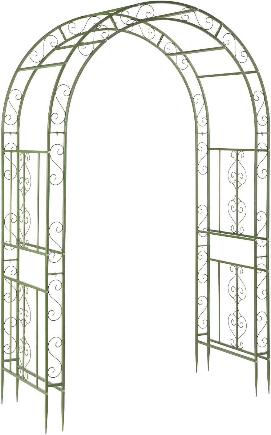 Whether standing alone or covered with climbing vines and flowers, outdoor metal arch add a striking focal point to your yard. Adding grace and prominence to any outdoor venue with the Arbor features squared lattice side panels Features:1. Provide plenty of support for your climbing flowers, vegetable plants, rose bushes, and vines2. Beautifully crafted, with flat top3. Add style to any backyard or garden4. Sturdy, rustproof iron frame with powder coated finish lasts for years5. Simply stake into the ground for fast and easy installationSpecifications:1. Material: Iron2. Color: Black3. Dimensions: (81.1 x 15.94 x 81.89)" / (206 x 40.5 x 208)cm(L x W x H) Length includes top strip, not arch 4. Weight: 19.51lbs / 8.85kg