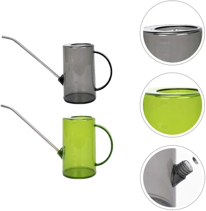 Description Our long spout watering can for indoor plants is professional, yet stainless steel long spout watering kettle. Are you in search of a sturdy, unique, retro modern tool that can do multiple jobs at once? Our professional long spout watering pot for indoor plants must meet you needs. Features- Color: Grey, Green.- Material: stainless steel, plastic.- Size: About 9. 43X6. 68X3. 54inch/ . 00X17. 00X9. 00cm.- PP material bottle body is sturdy and . Transparent polished green and grey surface will make any room more stylish.- Stainless steel long spout allows you to control the water flow and makes it easier to reach under low- hanging leaves. - 1L large capacity design brings convenience to your gardening work.- Our long spout watering kettle is ideal for succulents, flowers, bonsai trees, garden, orchid plants.- The fashionable appearance design of watering can bring you a unique, retro modern feel.- Indoor and outdoor watering can is an excellent for any houseplants or outside gardening. Package Including 2 x Watering Kettle