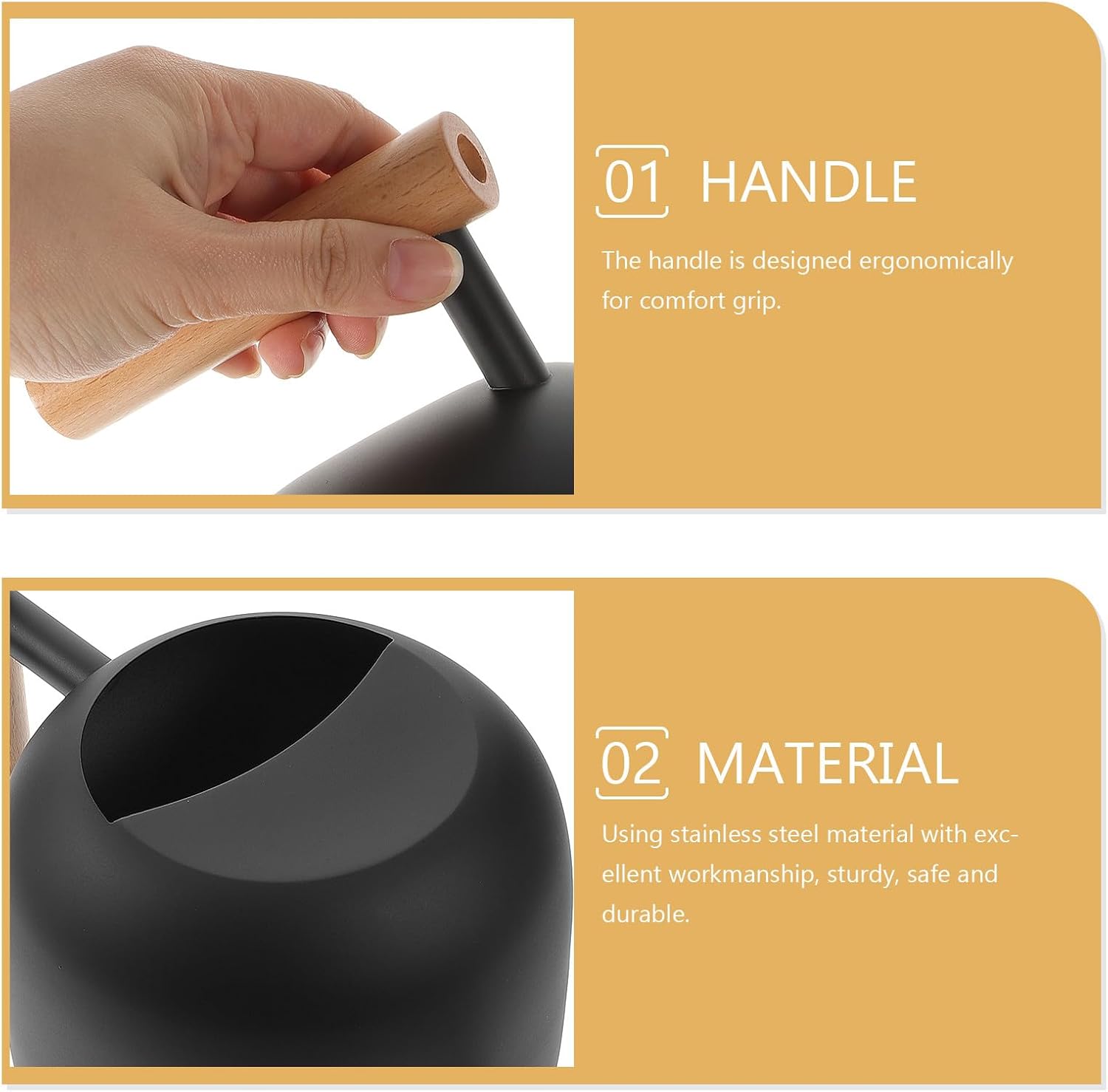 Package List 1 x Watering Can Characteristics -Product Info:Long-nozzle spray pot -Material:Stainless Steel,wood -Color:Black -Size:30.00X15.00X12.00cm/11.79X5.89X4.72in - Using stainless steel material with excellent workmanship, sturdy, safe and durable. - Suitable for home outdoor and indoor use, you can water anytime easily watering pots. - The opening makes it easy to refill the water. The handle is designed ergonomically for comfort grip garden watering tool. - Watering your plants easily as you like to ensure their healthy growth in office, garden or at home watering kettle. - Perfect for indoor and outdoor, also great gift for your friends and family Wood Handle Watering Can.Goods Informationindoor watering can metal Suitable for indoor or outdoor gardening watering use.watering can metal Specially designed for gardening use.home flower watering kettle The watering can is made of premium stainless steel material, practical and durable for use.vintage watering bucket It can greatly your watering efficiency