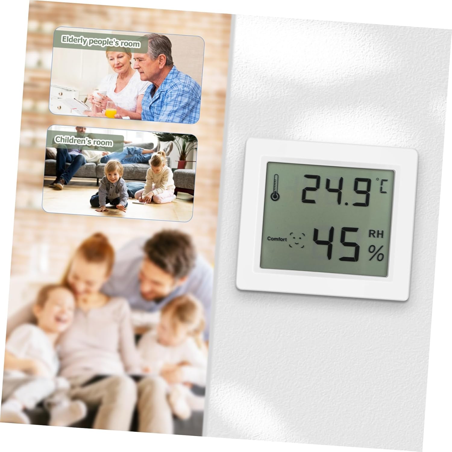 Package Include 6 x Hygrometer Thermometers Characteristics Comfort 20-26℃/50-70%, display: 3 indoor hygrometer - measurement accuracy: ±1°C digital thermometers -Humidity measurement accuracy: ±5% hydrometer for humidity - measurement resolution: 0.1°C (if the exceeds this range, it will display or LL) hygrometer for room - measurement range: -10~60℃ room - switching unit: ℃/℉ gauge -Humidity measurement resolution: 1% digital Humidity: humidity>70%, display: 2 room hygrometer -Size: About 8.50X7.50X1.30cm/3.34X2.95X0.51in indoor Dry: Humidity<50%, display: 1 humidity sensor -Color:White hygrometer - measurement cycle: 10 seconds room monitor -Comfort display range: humidity gauge -Humidity measurement range: 10%- measuring tool -Material: ABS -It has two functions and a hygrometer, which can provide convenience for your daily life and work humidity measuring gauge. -LCD large screen display, all data displayed on the screen humidity digital hygrometer. -The digital has high precision and stability and can measure indoor humidity meter.Goods Information humidity monitor Our hygrometer is made of material that will serve you for a long time. gauge Recommended for families with babies, seniors, and pets.indoor The product is compact and lightweight, can easily place this indoor anywhere you want