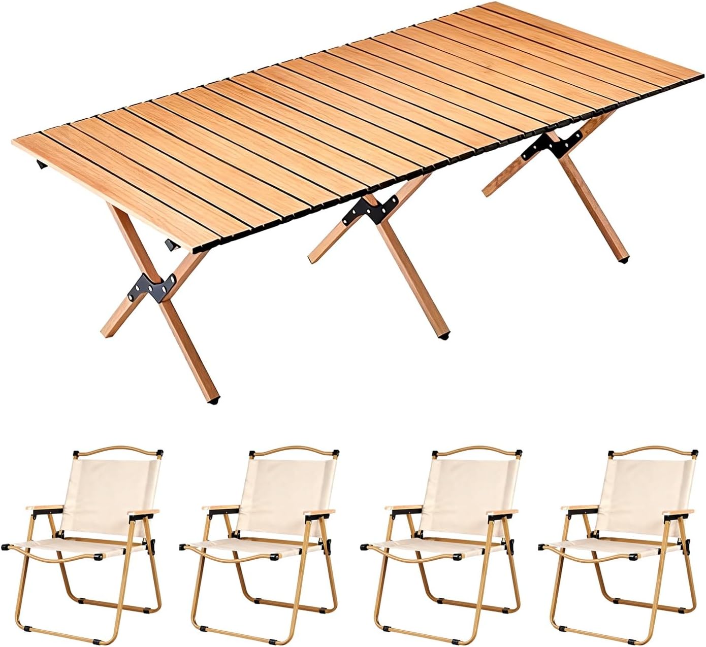 • ▶ Convenient Storage: This cleverly designed camping table and chairs feature an egg roll-style storage system for effortless opening and closing. Once folded, they compactly fit into a portable size, making them easy to carry and convenient for outdoor adventures.