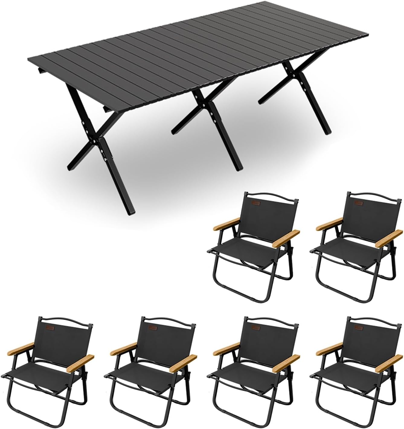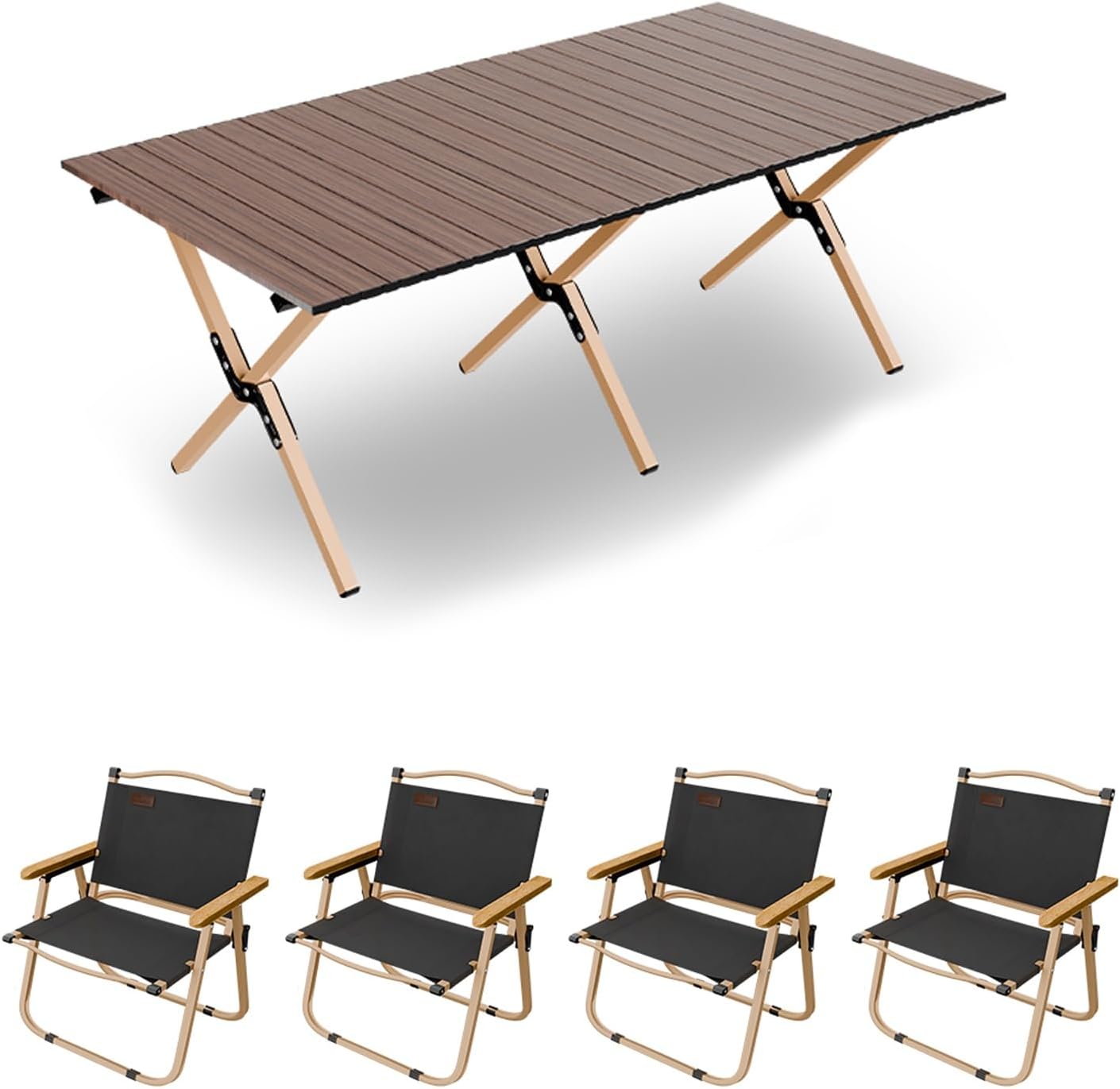 Welcome to my shop~This foldable camping table and chair features multi-layered protection, making it durable and resistant to wear and sun exposure. Its super-strong golden X-shaped structure is scientifically stable and load-bearing, making it suitable for diverse outdoor environments and ensuring long-term and safe outdoor use.This camping table and chair offers exceptional portability and easily rolls up for compact storage. Assembly requires no tools and takes only 3-4 minutes. It's suitable for both indoor and outdoor use, perfect for backyards, balconies, and other locations, making it an ideal choice for camping and leisure activities.- Name: Outdoor Folding Table and Chair Set- Color: Khaki, Black,Brown- Material: Carbon Steel, Oxford Cloth- Table Dimensions: 89*59*43cm/35*23.2*16.9in, 116*59*43cm/45.7*23.2*16.9in, 145*59*43cm/57*23.2*16.9in- Chair Dimensions: 47.5*51*76.5cm/18.7*20*30.1in- Suitable for a variety of outdoor occasions: camping, picnics, family outings, garden parties, RV vacations, hiking, fishing, barbecues, travel, and parks.- Includes: Folding camp chairs, folding table, and carrying/storage bag.Safety Warning: When used outdoors, the chairs must not exceed a weight limit of 100kg, and the table must not exceed a weight limit of 75kg. Please ensure the table is properly installed and secured.