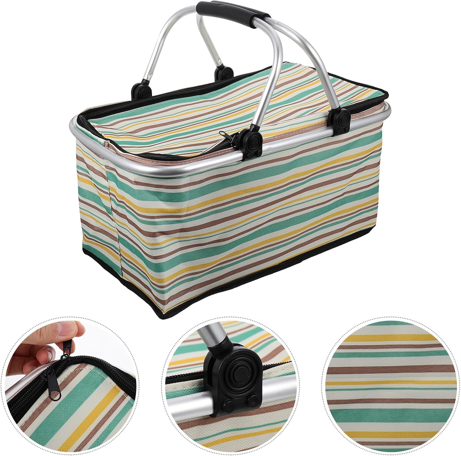 Package List 1 x Basket Characteristics - Size: About 47.00X28.00X25.00cm/18.47X11.00X9.82inch. - Material: Oxford cloth, Aluminum tube. -Product Info:Insulated bag picnic basket - With sturdy handle design, it is easy to carry handle baskets. - - Manufactured with , the basket is and could be used for a long time. - Great for food storage, shopping, picnic and more, also a great gift for your wife and mom grocery shopping basket with handles. - With zipper design, it is convenient and prevents food from spilling out when driving insulated picnic baskets. - Not only does it have heat insulation, but also it could keep food or beverages cold during a picnic or trip or go to the grocery store beach picnic basket.Goods Informationhandle baskets Easy to open and close with zipper, keeping your food from leaking out.insulated grocery basket Have the function of both heat preservation and cooling.picnic fruit harvest basket The professional insulated grocery basket, made of material, is practical and durable for lasting use.multifunctional basket Great choice for shopping and outdoor traveling