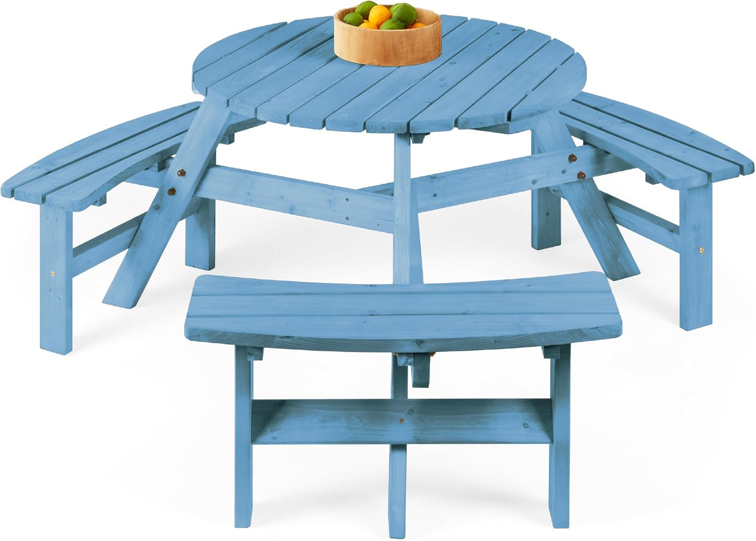 | Set Name | 6-Person Circular Outdoor Wooden Picnic Table |