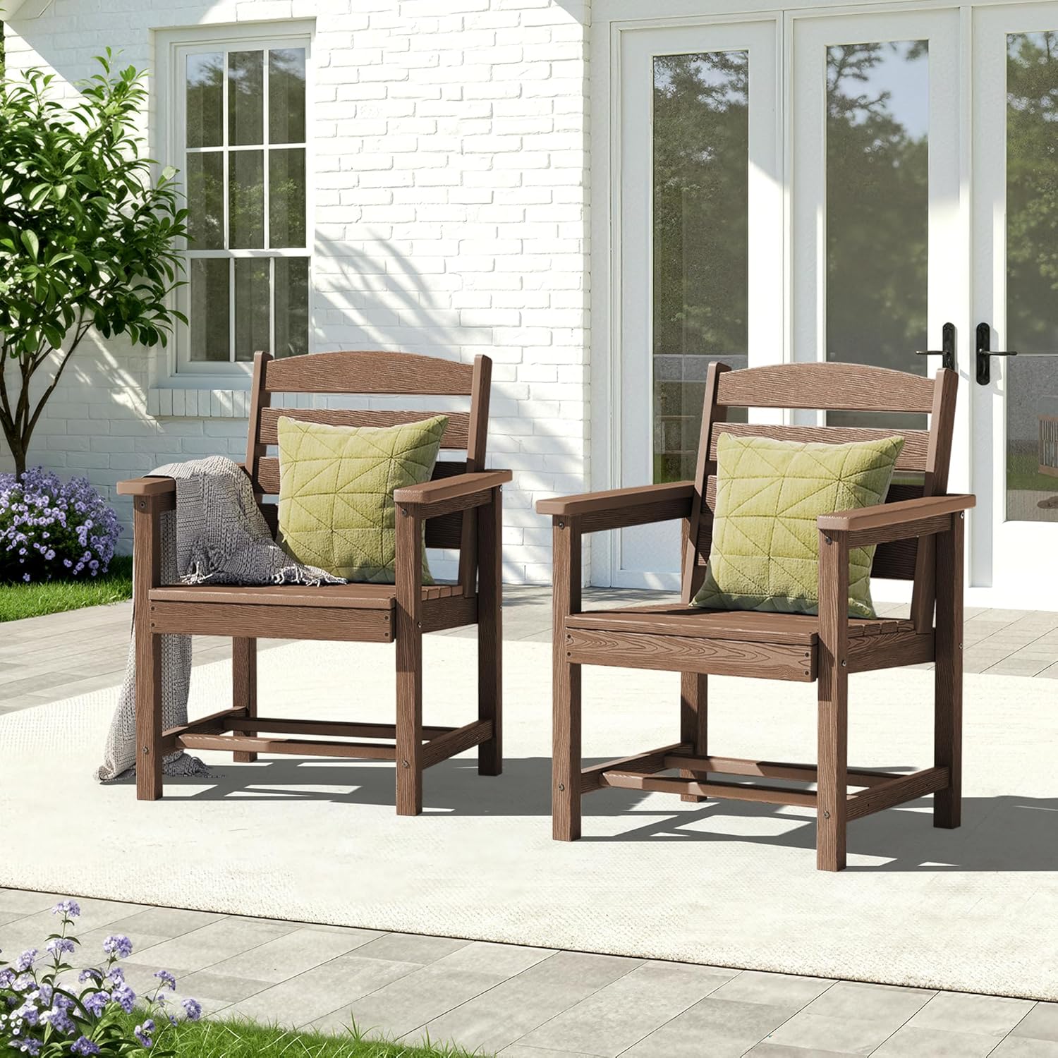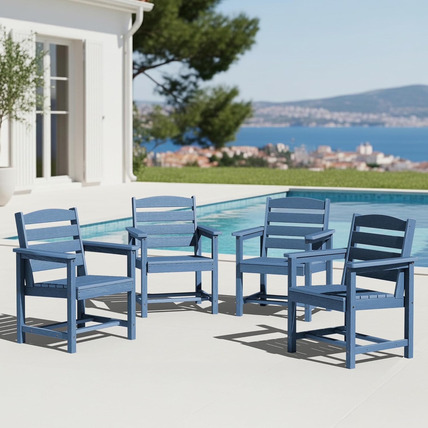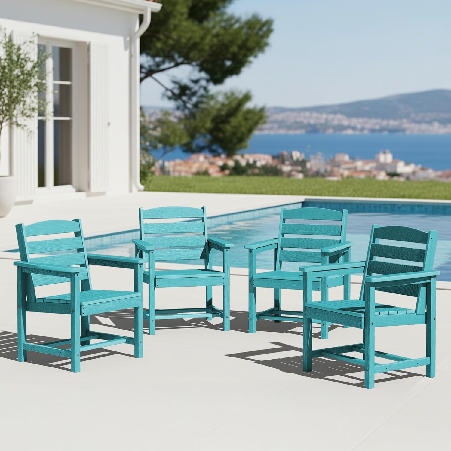 All Weather Outdoor Dining Table with Umbrella Hole, HDPE Rectangular Patio Table for Backyard, Garden, Porch, Deck