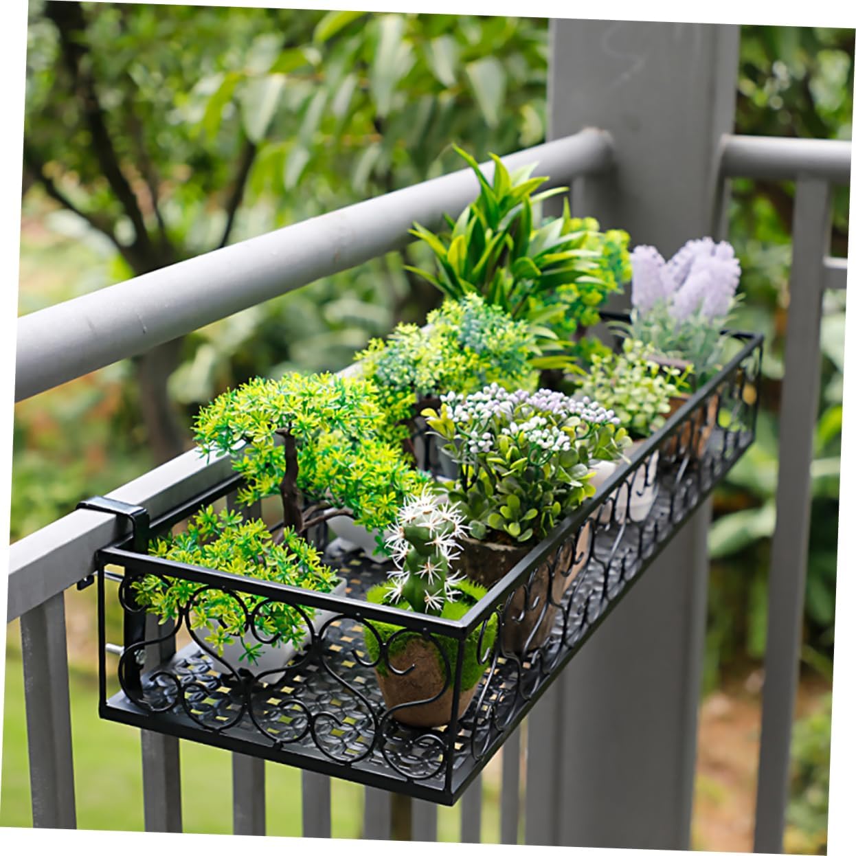Package Include 1 x Hanging Flower Stand Characteristics - Size: About 60.00X20.00X12.00cm/ 23.58X7.86X4.72in Railing Planter Pots Stand. - Material: Iron balcony planting rack. - Color: Black balcony flower shelf. - It is easy and convenient to use, and easy to store when not in use Suspended Flower Stand. - It is made of iron material with workmanship for durability rail planter. - You can put flower pot to decorate your home or office flower shelf. - With fine workmanship, not easy to wear and tear, very in use flower pot holder. - The excellent workmanship of our product will bring you a using experience over the deck rail planters.Goods DescriptionBalcony Flower Pot Holder A decor for your home.balcony hanging rack Put some flower pots , bring you a new feeling and mood.hanging flower pot holder It has a simple design, but very in use.railing planter holder The flower pot wall rack is well-made of iron material for and use
