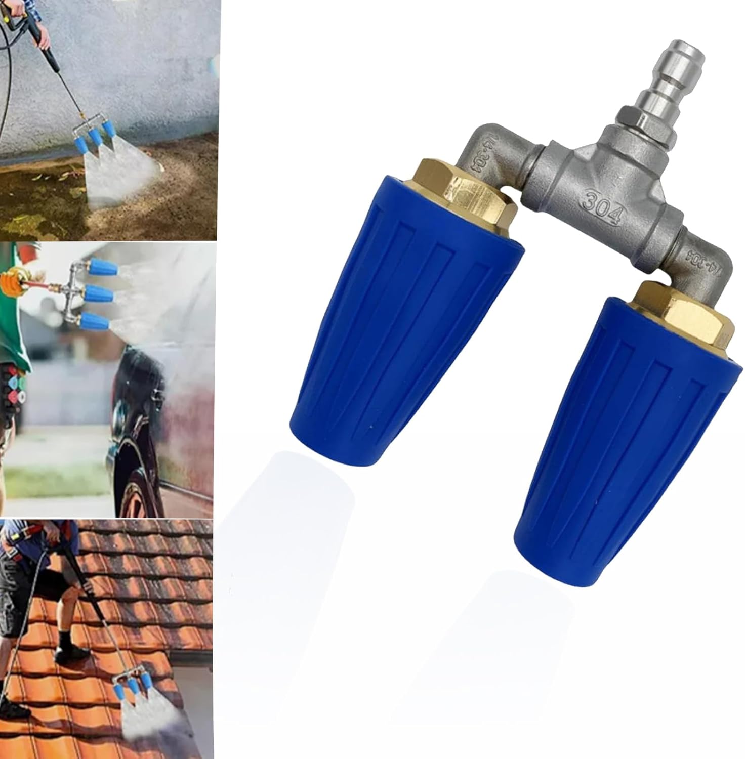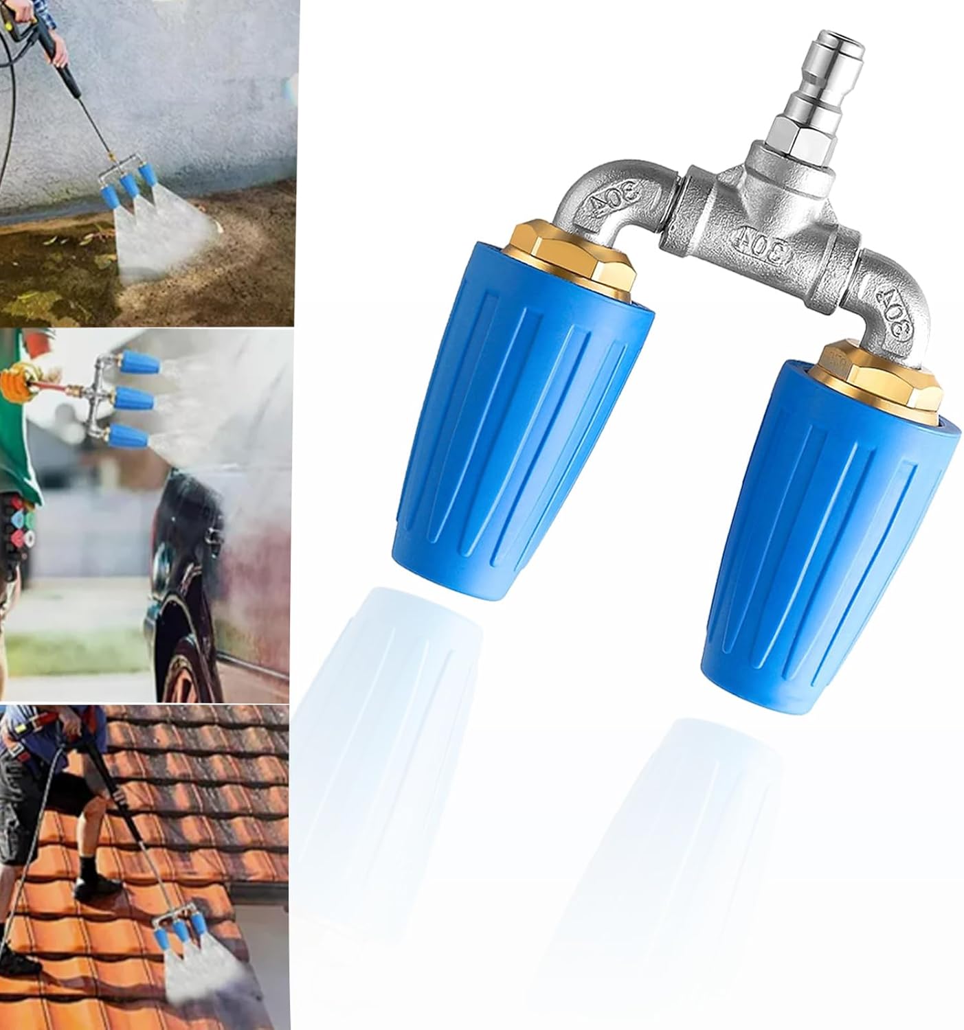 Twin/Triple Turbo Nozzle, Triple Turbo Nozzle Pressure Washer, Pressure Washer Nozzle Tips, 360° Rotating Turbo Power Washer Nozzle with 1/4" Quick Connector, 4-6 GPM, 4000 PSI Max Features: 1.Quick & Easy Tool-Free Setup 2.Powerful Dual Rotating Nozzles 3.360° Adjustable Spray Angle 4.Durable,Leak-Proof Construction 5.Boosts Water Flow for Fast Results 6.Upgraded Turbo Nozzle Performance 7.Cleans Driveways, Decks, Ideal for Heavy-Duty Cleaning Specifications: Condition:100% Brand New Size: 168.8mm x 142mm / 6.65'' x 5.59'' Main Material: Stainless Steel+Aluminium Weight: 590g(Twin)/850g(Triple) Type: Pressure Washer Nozzle Max Working Pressure: 4000 PSl / 276Bar Connection Types: 1/4" Quick Connect Color: Blue/Red/Black Package Included: 1pc *Twin/ Triple Turbo Pressure Washer Nozzle Note: 1.Due to manual measurement, please allow a difference of 1-5g/1-2cm 2.Due to different displays and different lighting, the picture may not reflect the actual color of the item. Thank you for your understanding