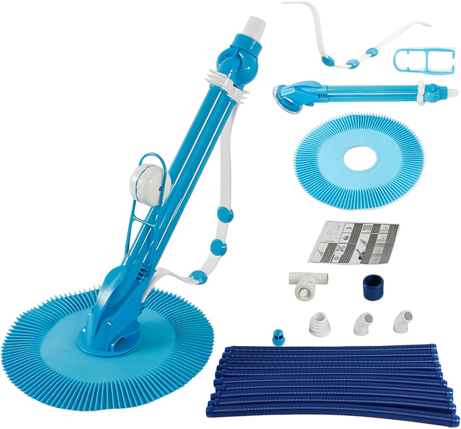 Is it too difficult to manually clean the swimming pool? You can try this automatic swimming pool vacuum cleaner.Powerful suction can easily clean debris, providing deep cleaning for your family and creating a cleaner swimming pool.You can customize the length of the hose to fit your swimming pool.Why Choose Our Automatic Pool Vacuum Cleaner?1. Provide a quick and easy way to clean your swimming pool2. Efficiently clean up leaves, debris, pebbles and short twigs3. No jamming or breaking interrupting the cleaning process4. Easy to install5. Come with a regulator valve and 10 durable hoses for replacementSpecifications1. Automatic Pool Vacuum Cleaner Material: Plastic 2. Weight: 9.9 lbs3. Color: Blue4. Requirement: at Least a 3/4 horsepower swimming pool pump or 1600 GHP to function properly 5. Cleaning Area: Ground Pool up to 16' x 34'6. Tools Required: No 7. Electricity Needed: NoPackage Includes: 1 x Swimming Pool Cleaner 10 x Durable Hoses Sets 1 x Regulator Valve 1 x Manual