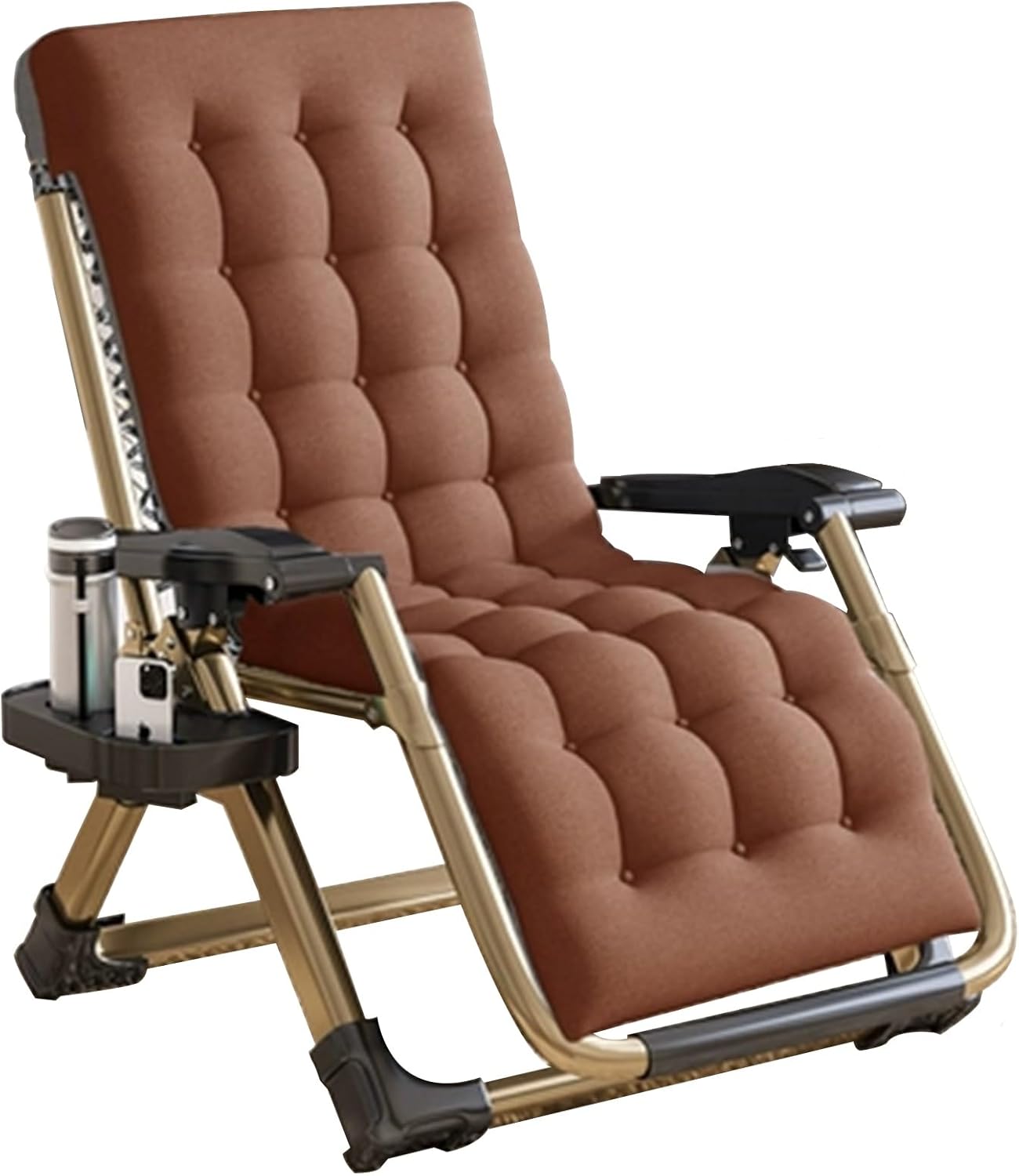The foldable leisure lounge chair adopts a unique anti-gravity design, and is suitable for human body curves and ergonomic, giving you a more comfortable and secure experience. It also comes with a gift blanket, creative water cup holder, original pillow, and 5 reinforcement straps.The foldable leisure lounge chair is made of double-layer toughened high-quality Teslin cloth, which is stain-resistant, wear-resistant, low-noise, odor-free, strong and tear-resistant, and uses upgraded thickened 40mm square steel pipe and double high-elastic latex rope to form a solid triangular structure , has strong load-bearing capacity, with a maximum load-bearing capacity of 200kg.The foldable leisure lounge chair is easy to carry when going out. It can be used to sleep, relax, nap or read in the courtyard, lawn, beach, garden, poolside, balcony and other places. It is the best choice for indoor and outdoor rest.● Material: Teslin fabric + steel pipe + high elastic latex rope● Dimensions (open): 70×25×25 in (length×width×height)● Dimensions (after folding): 25×37×5 cm (width×height×thickness)●Color: black/brown● Load-bearing capacity: 440lbs.