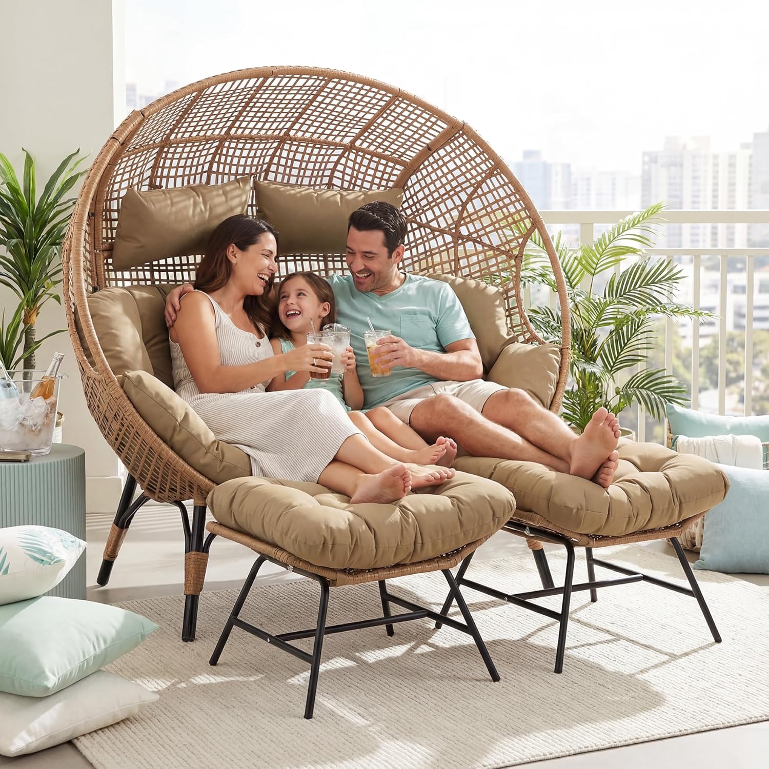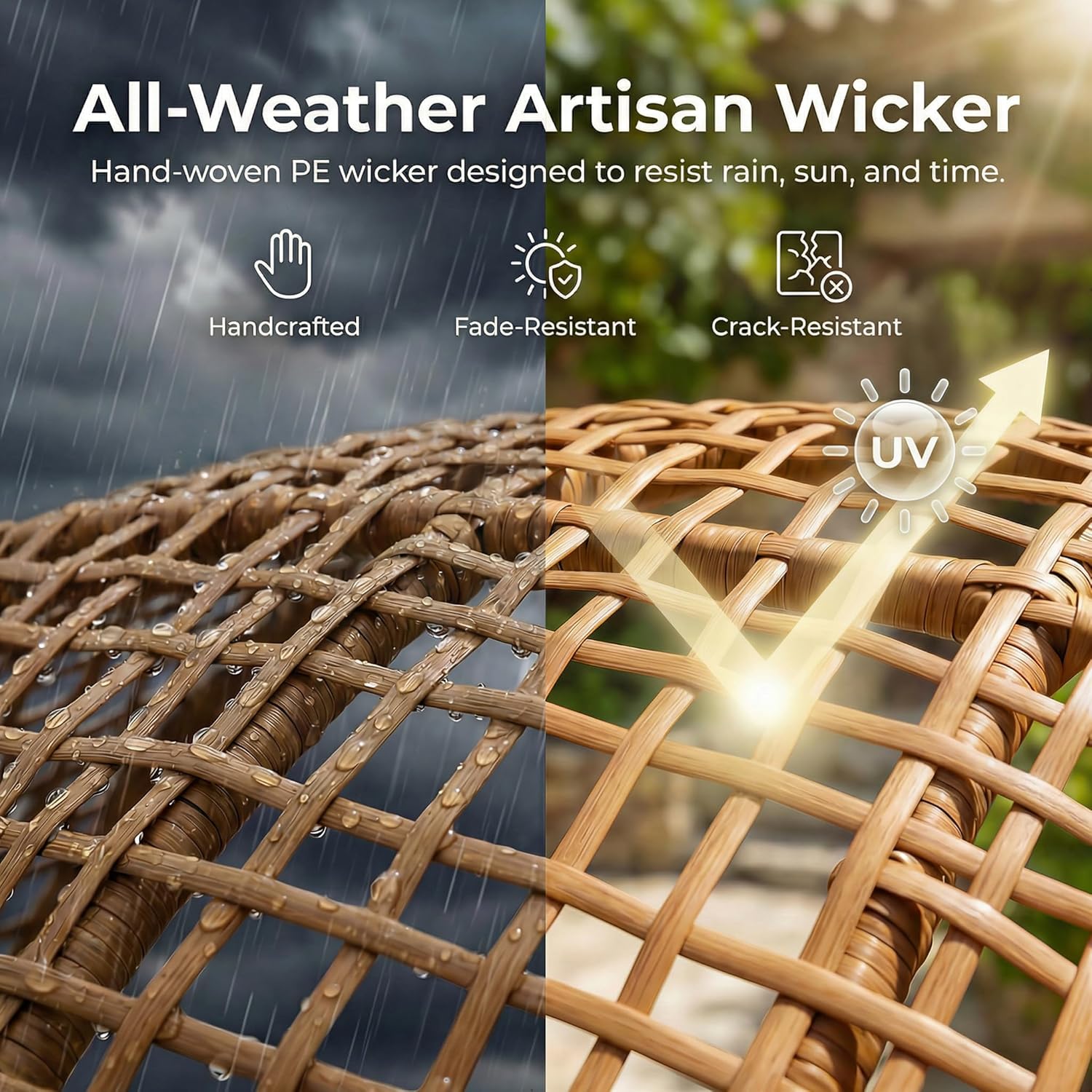 | Material Type | All-Weather Hand-Woven PE Rattan, Strong Sturdy Alloy Steel, Strong Supportive Padded Cushion |
