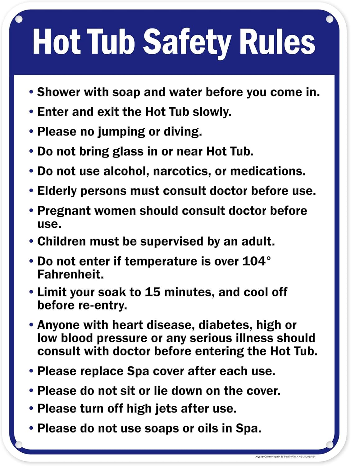 Hot Tub Safety Rules Pool Sign, 18x24 Inches, 3M EGP Reflective .080 Aluminum, Fade Resistant, Made in USA by My Sign Center