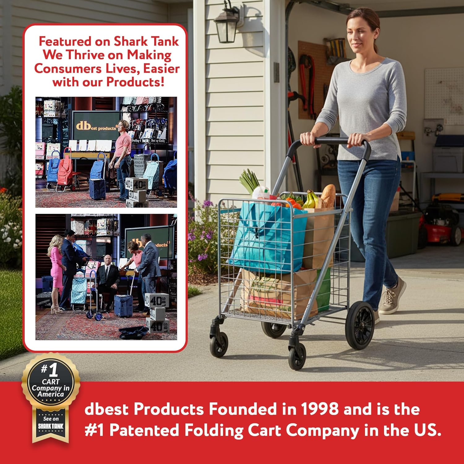 Say goodbye to struggling with heavy grocery bags and multiple trips from car to kitchen. The Cruiser Cart Deluxe 2 by dbest products combines industrial-strength durability with everyday convenience, making it the ultimate solution for grocery shopping, laundry transport, and household errands. ENGINEERED FOR DURABILITY, DESIGNED FOR LIFE Built with premium tubular steel construction and powder-coated finish, this heavy-duty utility cart resists rust and abrasion while supporting up to 100 pounds of cargo. The reinforced steel mesh base distributes weight evenly, allowing you to safely transport bulky items like water jugs, laundry baskets, garden supplies, or moving boxes. Despite its robust 100-lb capacity, the cart weighs just 10 pounds, making it easy for anyone to maneuver. PATENTED BRAKE TECHNOLOGY - A GAME CHANGER As the only shopping cart with a patented one-step braking system, the Cruiser Cart Deluxe 2 offers unmatched safety and stability. Simply step on the brake pedal to lock wheels in place during loading, preventing unwanted rolling on slopes or while parked. This exclusive feature has made dbest products the cart experts trusted by families nationwide. READY TO USE - MINIMAL ASSEMBLY The Cruiser Cart arrives mostly assembled. Simply attach the handle, and you're ready to roll. No complicated instructions or hardware frustrations. SPECIFICATIONS YOU CAN COUNT ON - Weight Capacity: 100 lbs - Cart Weight: 10 lbs - Open Dimensions: 17.5"W × 17.25"D × 37"H - Folded Dimensions: 17"W × 7"D × 37"H - Basket Interior: 15.5" × 17" × 20.5" - Material: Tubular steel with powder-coated finish - Wheels: Front 360° swivel, rear shock-absorbing - Made: USA Designed