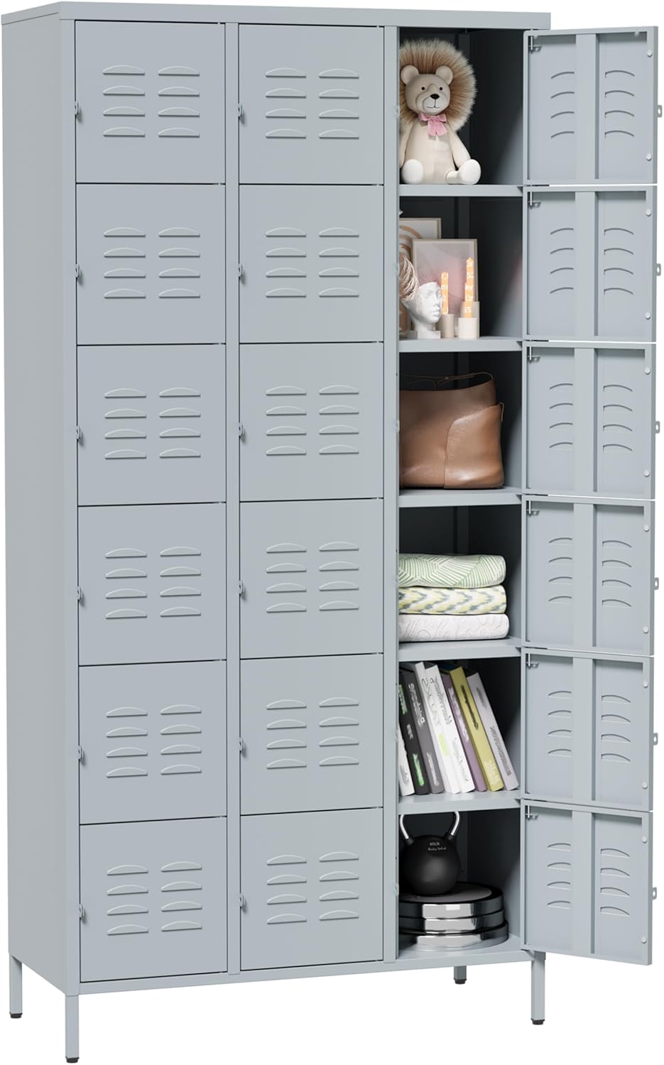 Metal Lockers for Employees,Lockable Storage Locker with Shelf,Large Lockers for Storage with Leg,gym locker,Steel employee lockers for Home Office School Gym Garage (Black,18 Door)